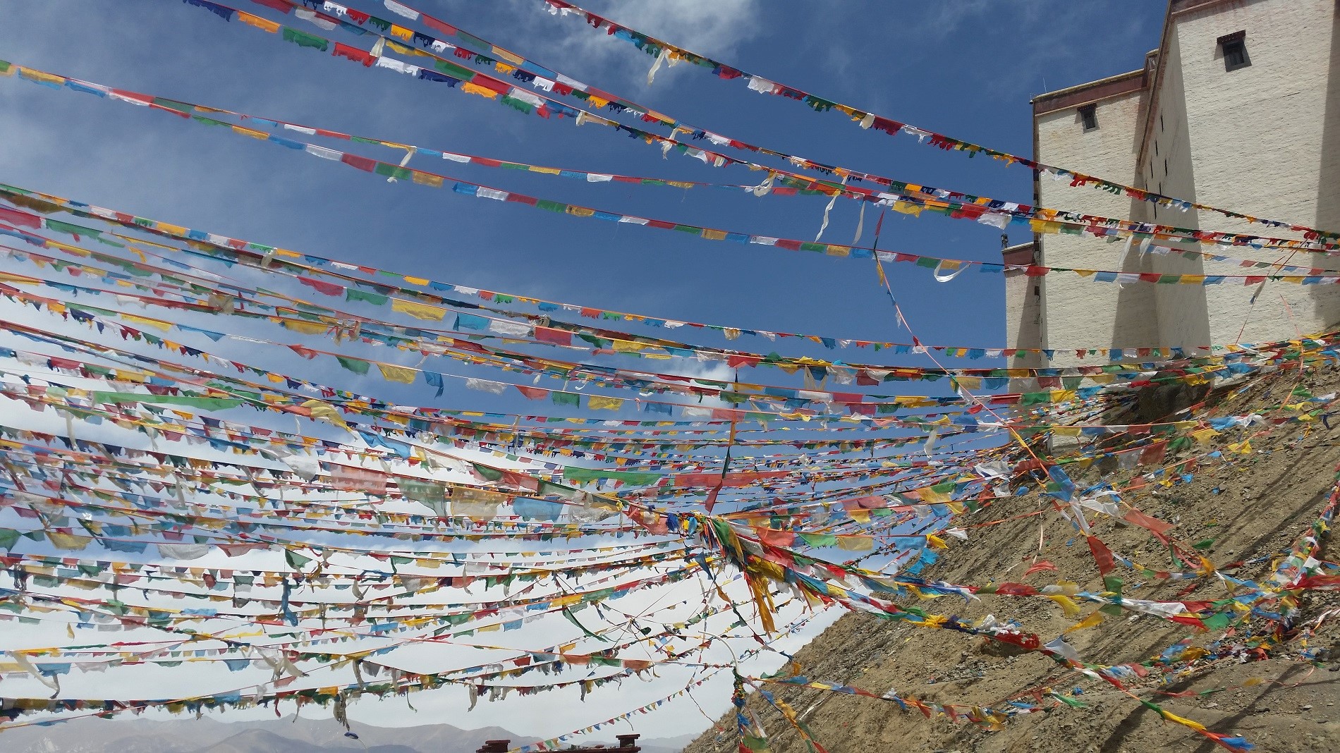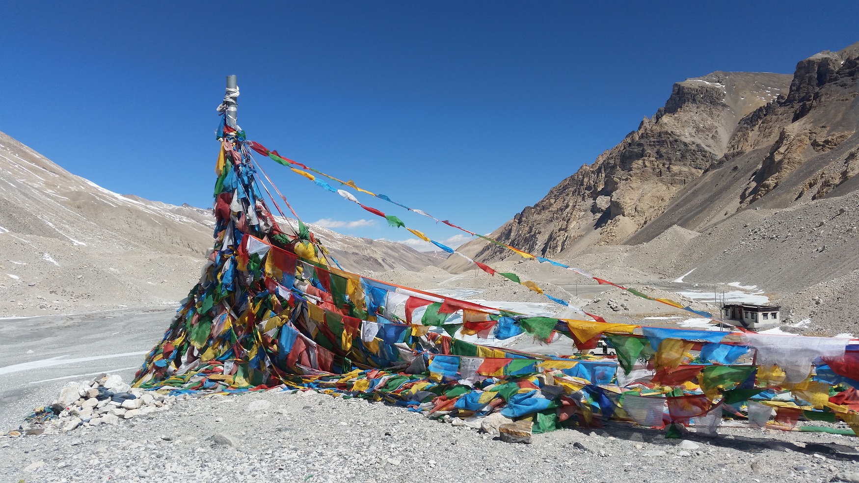 Tibeto kraštovaizdžis neįsivaizduojamas be budistų maldų vėliavų. | Foto: © „Vilniaus galerija“ / Audrius Klimas, 2015 m.