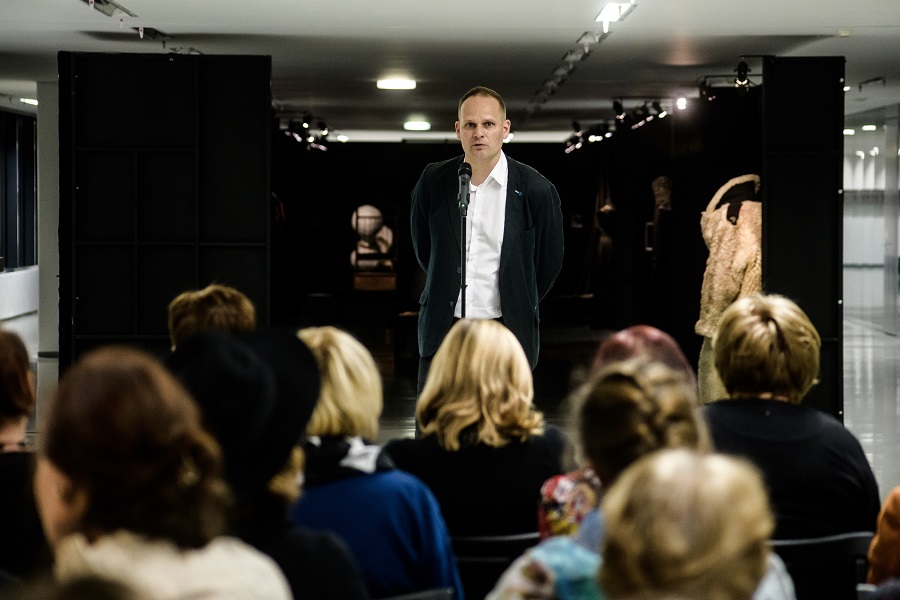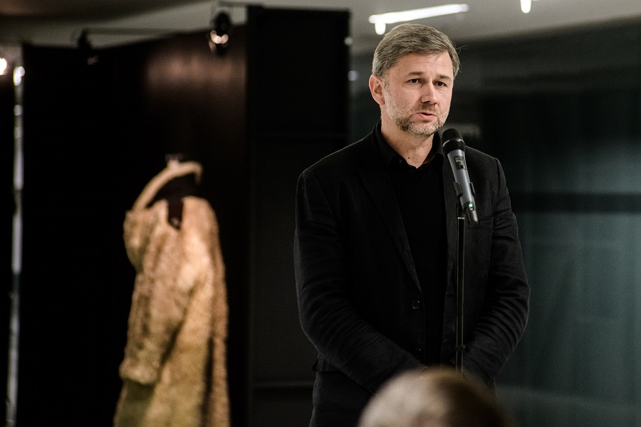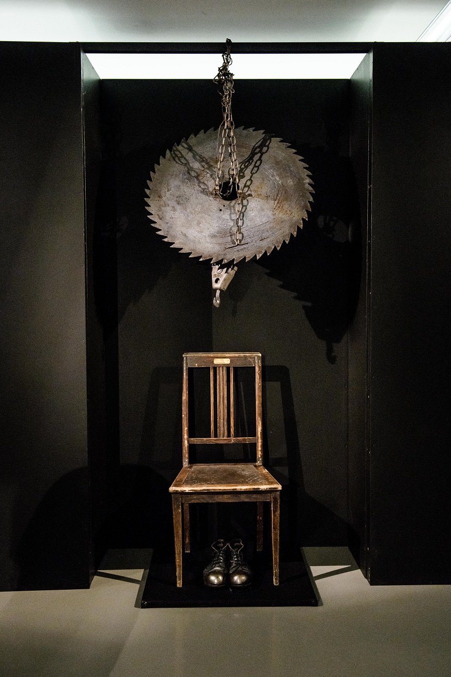 Ir nors teatro niekas niekada neatkartos, nes tai gyvas ir konkrečiu laiku veikiantis organizmas, vis dėlto ši paroda dar skleidžia žmogaus šilumą, kostiumai dar neataušę nuo tos energijos, kuri kažkada liejosi didžiųjų teatrų scenose. Tėvo šmėkla – balti kailiniai iš „Hamleto“, atrodo, tuoj pradės vaikščioti, o dantyto pjūklo garsai ims skrosti per ausis… Kėdė, neabejoju, dar jo tėvo sukonstruota, virš jos – kabantis diskinis pjūklas, po ja – Hamleto batai. Eksponuojami daiktai traukia paliesti, nors kartu ir kankina savo prisiminimais. Ne veltui šis žudantis jausmas išprovokavo Oskarą Koršunovą atsisėsti į šią kėdę, virsti Hamletu ir įrodyti, kad batai, eksponuojami po kėde, yra beveik tokie pat kaip jo. Vieną nuotrauką režisierius išplatino tik grįžęs po konferencijos, kuri taip pat vyko šioje galerijoje. Ir tai nebuvo šventvagiška akcija. Tai buvo gyvas santykis su tuo, kas suformavo mus, visą teatrinę kartą.