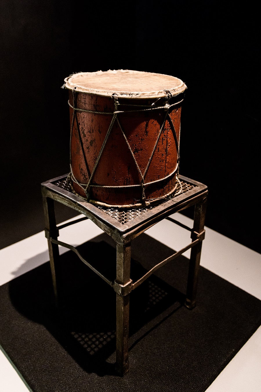 Šis apeiginis instrumentas į Nekrošiaus pasaulį atkeliavo dar iš XIV amžiaus pradžios. Lietuvos ir Žemaičių Didžiosios Kunigaikštystės kronikoje kariški būgnai minimi 1321 mūšio aprašyme. Raudono būgno ir prasmė, ir spalva tapo ne tik parodos „Eimunto Nekrošiaus Meno fortas“, bet ir viso renginių ciklo „Paskutinieji“ ženklu.