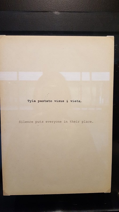 Nacionalinės dailės galerijos fojė įrengta paroda trenkė kaip žaibu. Vos įžengus atrodė, kad patekai į Nekrošiaus namus. Maketai, eskizai, kostiumai ir rekvizitas, mintys ir citatos iš jau neberodomų spektaklių – „Hamleto“, „Makbeto“, „Otelo“, „Metų“, „Giesmių giesmės“, „Fausto“, „Idioto“, „Dieviškosios komedijos“. Du pagrindiniai vaizdinės minties autoriai – Nadežda Gultiajeva ir Marius Nekrošius, dizaineris – Audrius Jankauskas, parodos kuratoriai – Audronis Liuga ir Julija Reklaitė, – ir visų indėlis juntamas. Ilgoj juodo fono erdvėj šiems spektakliams suteikta galimybė „kalbėti“ atskirais segmentais, mažais prisilietimais. Minčių laisvė įkalinta griežtoje formoje. Spektaklių pavadinimai – ant skiriamųjų sienelių briaunų. Jie kreida užrašyti, – juk viskas laikina, pavadinimus gali taip pat greitai nuvalyti, kaip ir laikas iš teatro erdvės gali ištrinti visus spektaklius. Bet likusi beveidė atmintis gali išsaugoti prisiminimą.
