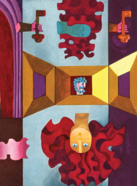 Dabar suprato mergaitė, kur patekusi: tas Žaliabarzdis – tai galvažudžių vadas, kuriam ji pusę galvos buvo nukapojusi – antai jis nusiėmė žaliąją savo barzdą ir tada gražiai matyti, kad jis tik pusę galvos beturįs.