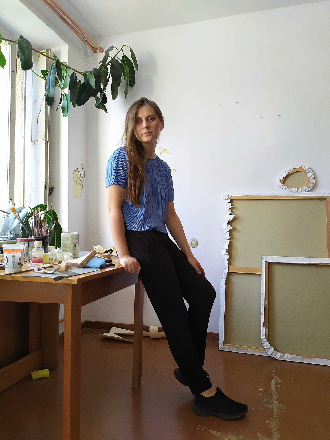 Siekiu vykdyti dialogą tarp asmeniškų ir globalių temų, narstydama meno istorijos, mitologijos, atminties vietų ir šiuolaikinių medijų kontekstus per tapybą. Išgyvendama netikrumo ir sumišimo jausmą šiuolaikybėje bei abejonę dėl meno kūrinio vaidmens, maišau pasirinktų motyvų kontekstus, šokinėju nuo vienos temos ar įvaizdžio prie kito, kurdama netikėtus, komiškus susidūrimus ir sąsajas. Tokią pačią strategiją naudoju ir tapydama: kuriu tapytus objektus, tradicinės aliejinės tapybos techniką maišydama su naivia, mimetiška, sintetine raiška. Mano kuriamų objektų tapybinis medžiagiškumas nurodo į mąstymą apie pačią tapybą bei jos galią ir prievolę reprezentuoti. Šią abejonę atskleidžiu kurdama tapytus objektus, kurie svyruoja tarp daiktų ir jų imitacijų, meno kūrinių ir meno kūrinių kopijų.