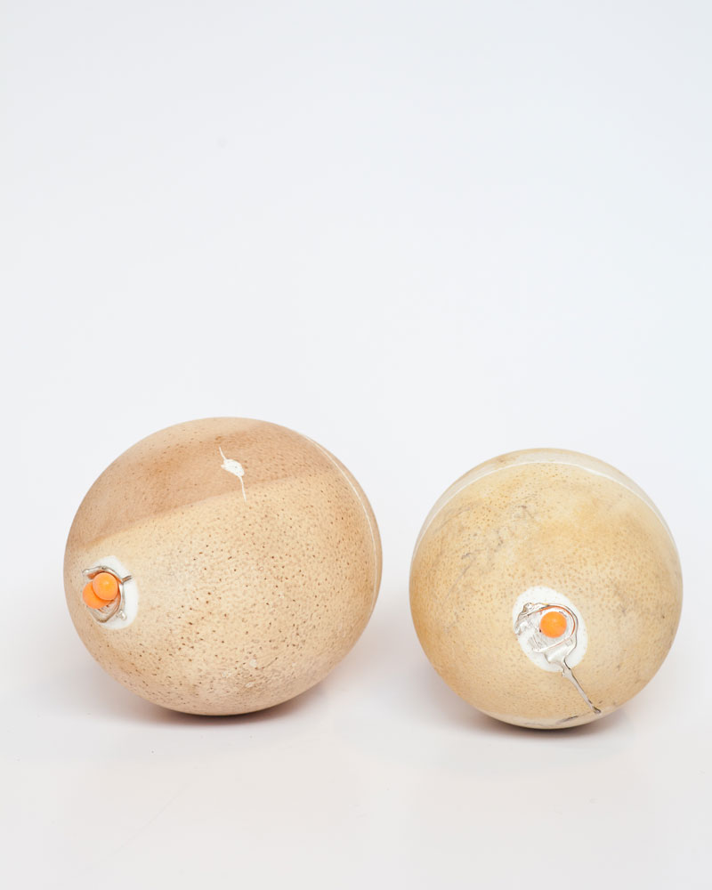– Kiaulės pūslę pirmą kartą atradau gyvendama Norvegijoje. Tuo metu teko išgyvent vienatvę, atnešusią man pačiai nepavaldų transformacijos laiką. Daug savirefleksijos ir kitu egzistencinių klausimų, kurie ne vieną gyvenime aplanko – kas aš iš tiesų, kodėl aš toks, kas formavo mane, o tada atsigręži dar toliau – kas formavo mano senelius, tėvus… Taip prisiminiau tėvų pasakojimą apie jų ankstyvos vaikystės žaislą – džiovintą kiaulės pūslę su žirniais viduje. Seniau ūkininkų šeimos turėjo išlikusią archaišką tradiciją gaminti organinius žaislus iš gyvūninės kilmės dalykų. Pasakodami jie tai prisiminė kaip ypatingą patyrimą, kuomet broliai ir seserys siausdavo, nepasidalindami pūslės balionėliu. Man tai skambėjo kontraversiškai – kaip tai gali būti smagu? Sugalvojau tą medžiagą susirasti grynai iš smalsumo, visai be jokių kūrybinių ambicijų. Tuo metu aš grįždavau į Šilutę maždaug triskart per metus. Vieną kartą grįžusi susisiekiau su vieno kaimo skerdykla ir paklausiau, ar galima būtų gauti pūslių. Gavau. Mamai pamokius, kaip jas išvalyti, užsūdžiau ir taip parsivežiau į Norvegiją. Kompresoriumi išpūstas išdžiovinau tiesiog ant radiatoriaus. Jos tapo baltos, gražios formos. Pridėjau į vienas džiovintų žirnių, į kitas – saulėgrąžų, į trečias stiklo granulių. Maniau, bus įdomu jų skirtingi garsai, kaip barškučių. Kurį laiką jos tiesiog kabojo, kol kartą pabandžiau vieną supjaustyti lakštais. Šie tyrinėjimai peraugo į kūrybinius bandymus – pieštuko, parkerio piešiniai, auksavimas, sidabravimas, lankstymas. Pati medžiaga išdžiuvusi primena popierių. Sūdyta ji balta, o jei džiovinama nesūdyta, tampa savotiškai skaidri, pasimato kraujagyslių struktūra..