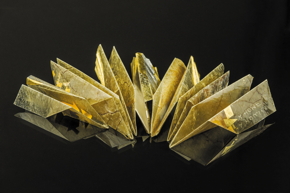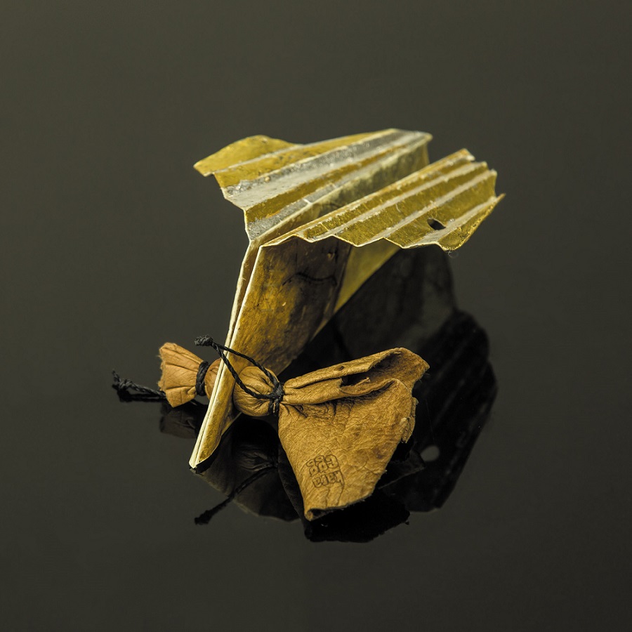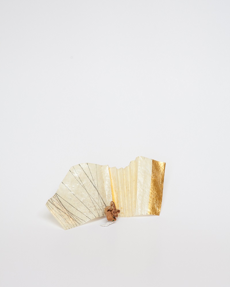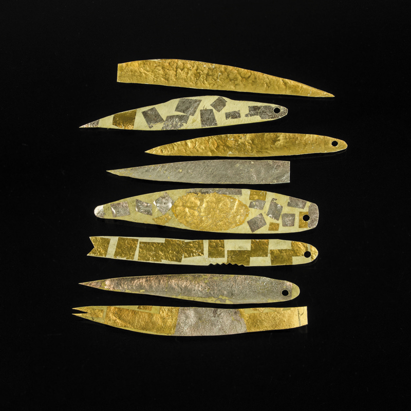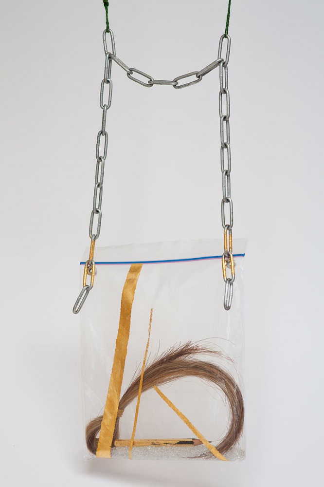 Segės iš serijos „Lėktuvėlis“. Kiaulės pūslė, auksas, sidabras, stručio oda, siūlas, magnetas | Gintauto Beržinsko nuotr.