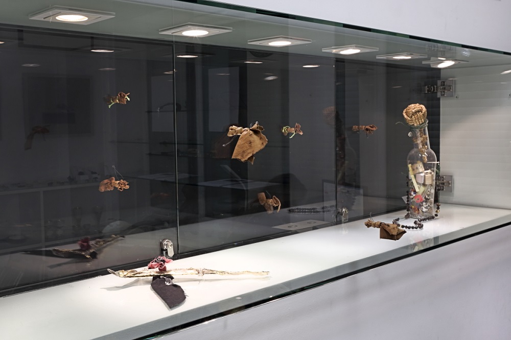 – Kalbant apie seges iš pūslių, tai pati medžiaga yra labai subtili. Aš ilgai mąsčiau, kaip padaryti jas pritaikomas nešiojimui. Man nesinorėjo pretenzingo įrėminimo sidabre, su sidabriniu užsegimu, todėl atradau magnetinį užsegimą, kuris sudarytas iš dviejų dalių. Naudojami magnetai, įvilkti į stručio odą, marškinių skiautes ir reflektorinį audinį; vienas magnetas pridedamas prie rūbo iš vidaus, o kitu pergamentas prispaudžiamas prie rūbo išorės. Magnetai stiprūs, tad reikia saugotis metalinių lauko šviestuvų ir geležinių baldų, o ypatingai muziejuose metalinių daiktų saugojimo spintelių – man yra buvę kurioziškų situacijų.