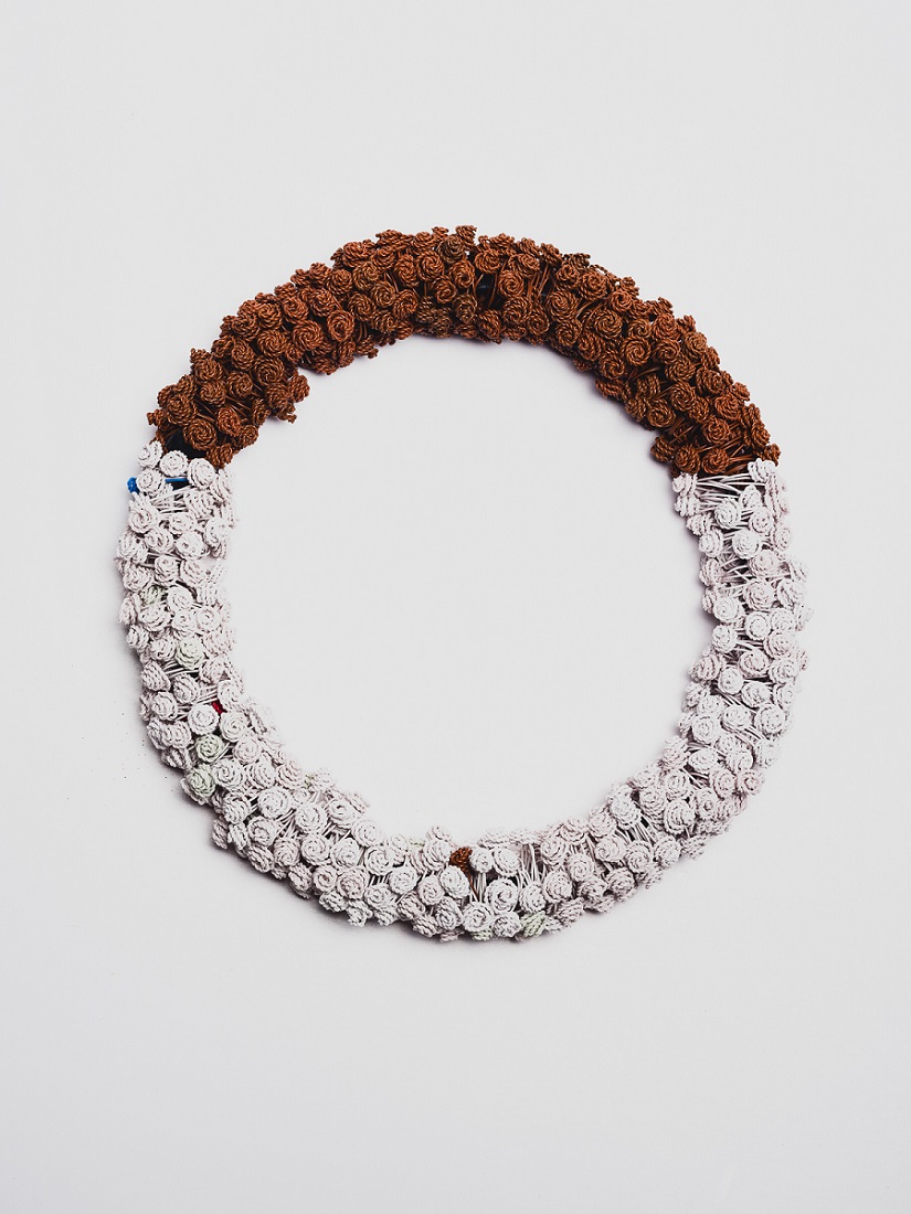 – Ar galima sakyti, kad dabar tavo interesų sritis medžiagų atžvilgiu šiek tiek keičiasi, kad tu tarsi grįžti prie metalo? Tavo kūryboje atsirado žiedai iš susuktų vielučių, kuriuos tu naudoji kaip priemonę, kaip sudedamąjį elementą didesniems papuošalams, kitiems objektams sukurti. Metalas vėl atsikariauja pozicijas?