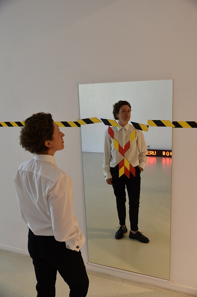 – Aš ir kalbu apie juvelyrikos objektą kaip apie meno kūrinį, o ne apie funkcinį objektą, įvardijamą vienu žodžiu – juvelyrika. Esu įsitikinusi, kad tai yra meno kūrinys. Man nepaprastai svarbu, kad juvelyrika, būdama meno kūriniu, transliuotų mano mintis, pasaulėjautą, laikmetį ir erdvę. Tarkim, naujausioje savo instaliacijoje aiškiausiai išsakau tai per sau užduotus uždavinius – perteikti mintis, idėją. Instaliacioje pasitelkiau veidrodį, kuris buvo svarbiausias viso darbo objektas vien jau semantine prasme, o kur dar tiesmukoji… Instaliacijoje „Regalijos. Kvietimas „Būk meru“ iš serijos „Ribos“, kalbu apie tai, kad tik atsistojęs veidu į save tu pamatai save iš tiesų. Meno kūrinyje vaizdo formavimas pasitelkiant veidrodį labai klaidino, nuvedė į paralelinę realybę, bet veidrodyje išryškėjo tam tikri dalykai, kurių paprastai neįmanoma pastebėti. Veidrodis – labai funkcionalus mūsų buities daiktas, kaip ir papuošalas, todėl jis per daug elementariai suvokiamas. Instaliacijoje juvelyrika buvo pateikta geometrinių plokštumų ant veidrodžio forma, kuri tapo atradimu tiems, kas įsivaizduoja, jog atėję į parodų salę gali pamatyti viską, bet iš tiesų tai įrodymas, kad tai – neįmanoma. Esu įsitikinusi, kad ne tik aš, bet ir dauguma mūsų turi tokių dalykų, kuriuos galima pamatyti tik tuomet, kai juos kas nors parodo pirštu. Tos regalijos ir buvo toks neapčiuopiamas dalykas – jų nebuvo įmanoma iškart pamatyti ir pagauti savo kūnu, jomis „pasipuošti“ galėjai, tik suradęs tam tikrą savo ir erdvės santykį, savo ir regalijų santykį, savo ir veidrodžio santykį. Tik tuomet galėjai suvokti, kad tu pats esi „žaidėjas“ ir tai, kas tave puošia, pagauni, tik įėjęs į kūrinio erdvę ir joje „žaisdamas“.