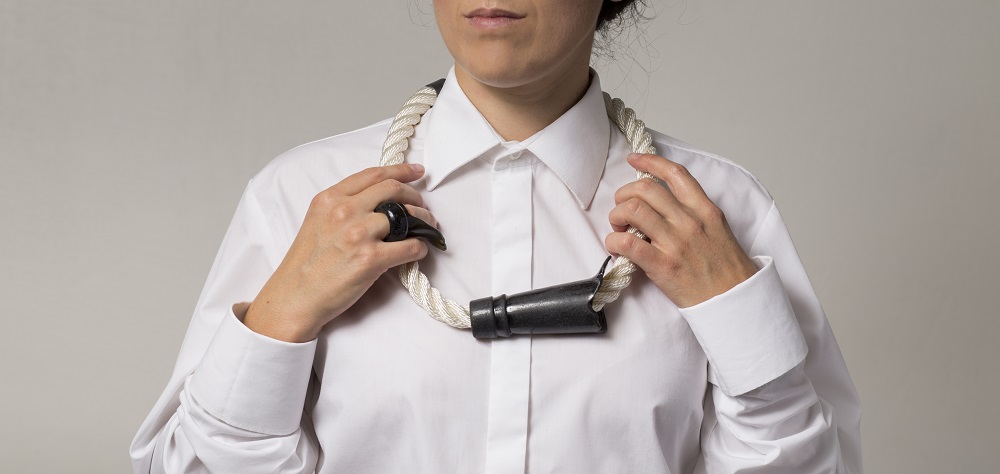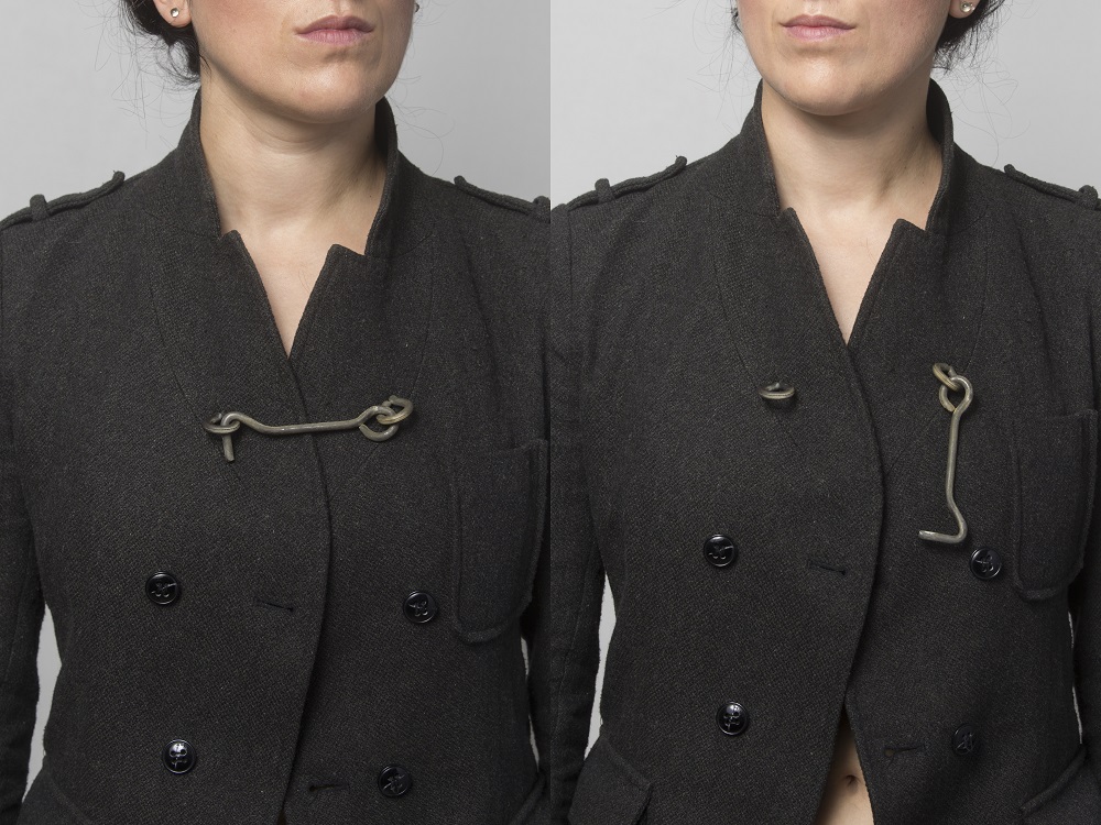 – Juvelyrika tavo kūryboje vaidina tikrai ne puošybinį, ne dekoratyvinį vaidmenį. Per ją išryškėja koncepcija. Bet čia mano dėmesį traukia vienas momentas: juvelyrika visuomet yra susijusi su žmogaus kūnu. Jeigu tos sąsajos nėra, tada darbas jau priskirtinas mažosios plastikos sričiai. Todėl juvelyrika neegzistuoja atskirai nuo kūno. Kokį vaidmenį žmogaus kūnas vaidina tavo kūryboje? Koks tavo santykis su kūnu ir kūniškumu?