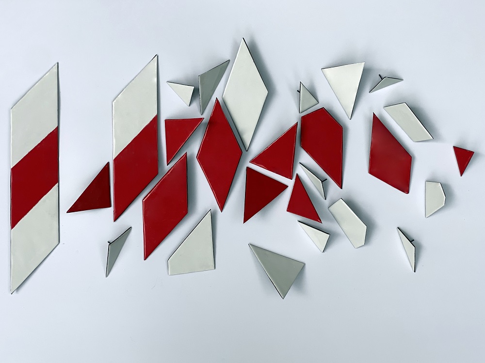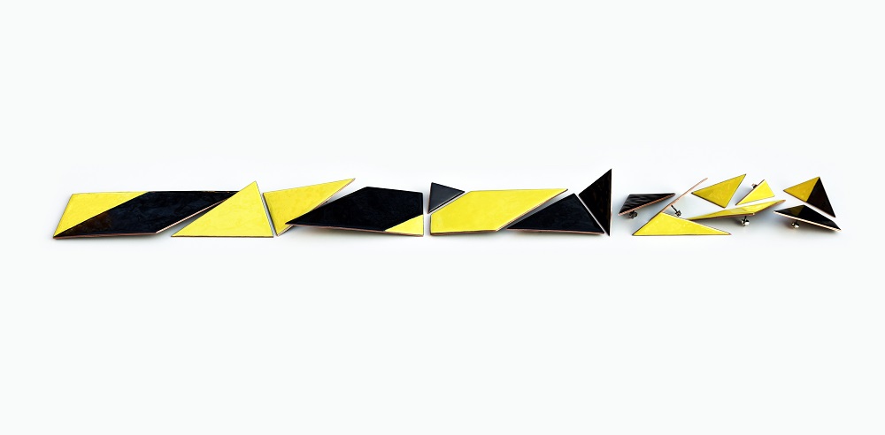 Juvelyrikos objektas: segės, auskarai. „Laukti“. Medžiagos: varis, emalis, sidabras. 2020. | Ingridos Mockutės-Pocienės nuotr.