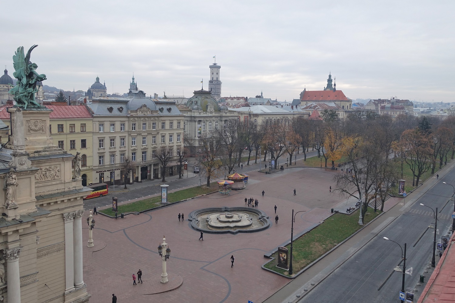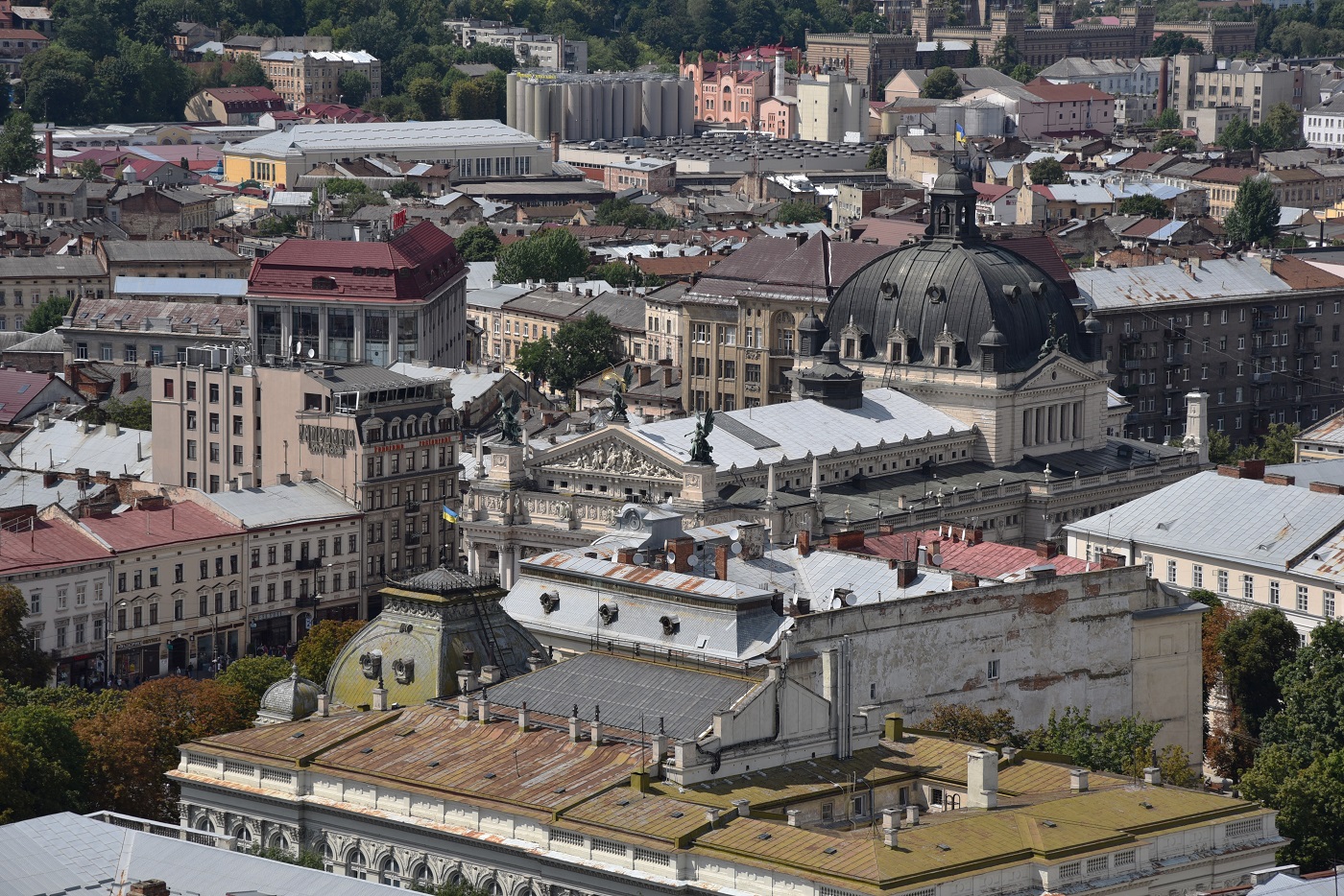 Lvovo senamiestis. Nuotraukos centre matyti Operos teatro frontonas, 2016 m. | Foto: © „Vilniaus galerija“ / Audrius Klimas