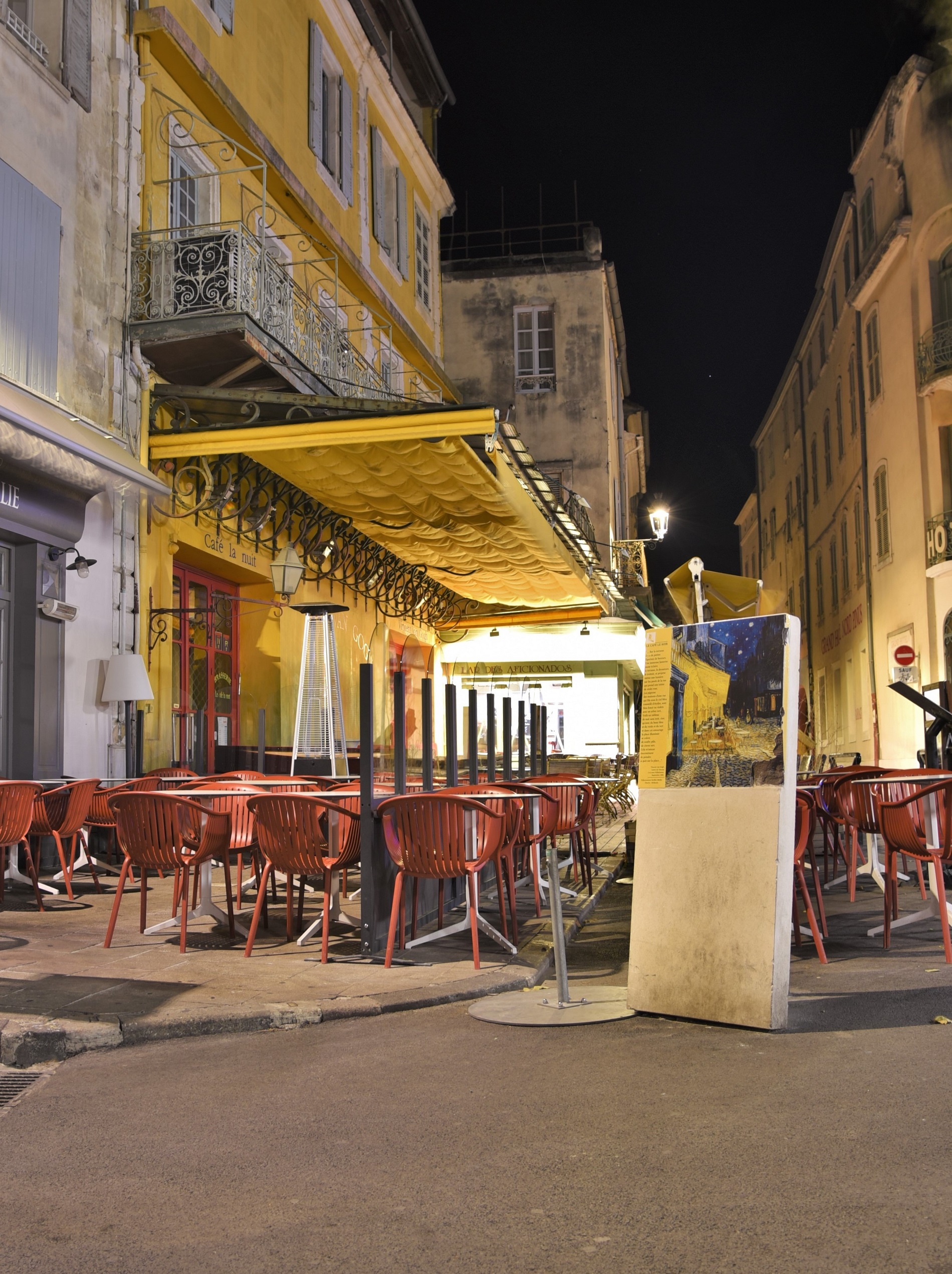 Tai – vienas pirmųjų darbų, Van Gogo nutapytų atvykus į Arlį. Šiame kūrinyje dailininkas taip pat pirmą kartą pavaizdavo žvaigždėtą nakties dangų, žymų jo kituose vėlesniuose šedevruose „Žvaigždėta naktis virš Ronos“ ir „Žvaigždėta naktis“. Kavinė, kurią aplankyti dabar plūsta turistai iš viso pasaulio, anot Van Gogo, labai panaši į 1885 metais pasirodžiusio Gi de Mopasono romano „Mielas draugas“ pradžioje aprašytą restoranėlį.