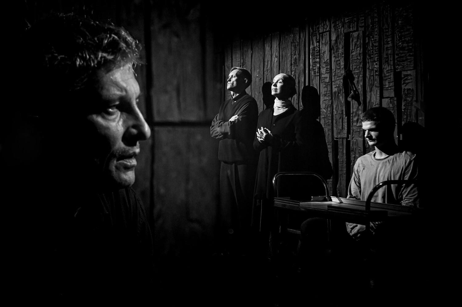 Repetuojant susidūriau su problema: pjesėje pritrūkau santykių, kurie paveiktų ar per kuriuos su veikėjais tiesiogiai tapatintųsi žiūrovas. Šioje istorijoje jie daugiau yra stebėtojai, bet ne dalyviai. Tai – ne dramaturgijos problema. Tai – mano akistata su pjese, joje atrasti veikiantys ar neveikiantys dalykai. Pjesę teko redaguoti, palikau tik apie penkiasdešimt puslapių. Šią pjesę galima statyti psichologine kryptimi, kaip daugiausia ir statoma – kaip psichiatro ir ligonio akistatą. Šis rakursas man pasirodė neįdomus. Mes atradome visiškai kitą kelią – užsikabinome ant Dievo savinimosi minties. Pjesėje psichiatras Daisartas pradeda savo monologą jau nuėjęs tam tikrą istorijos kelią. Ir jis jau yra paveiktas.