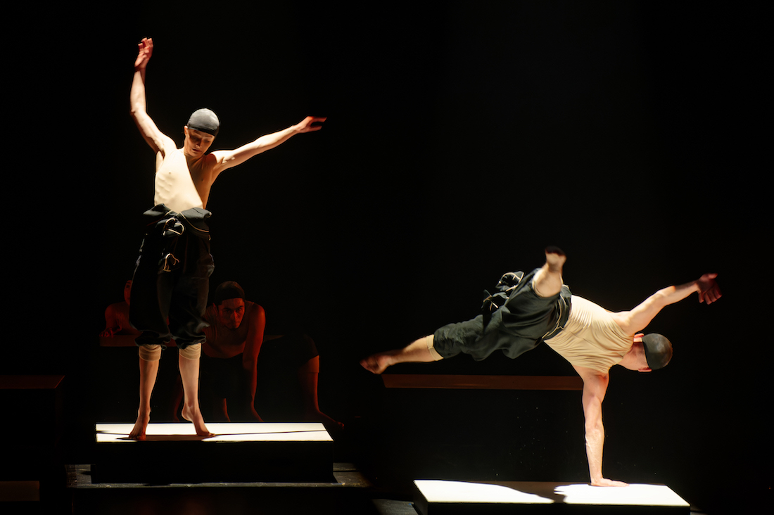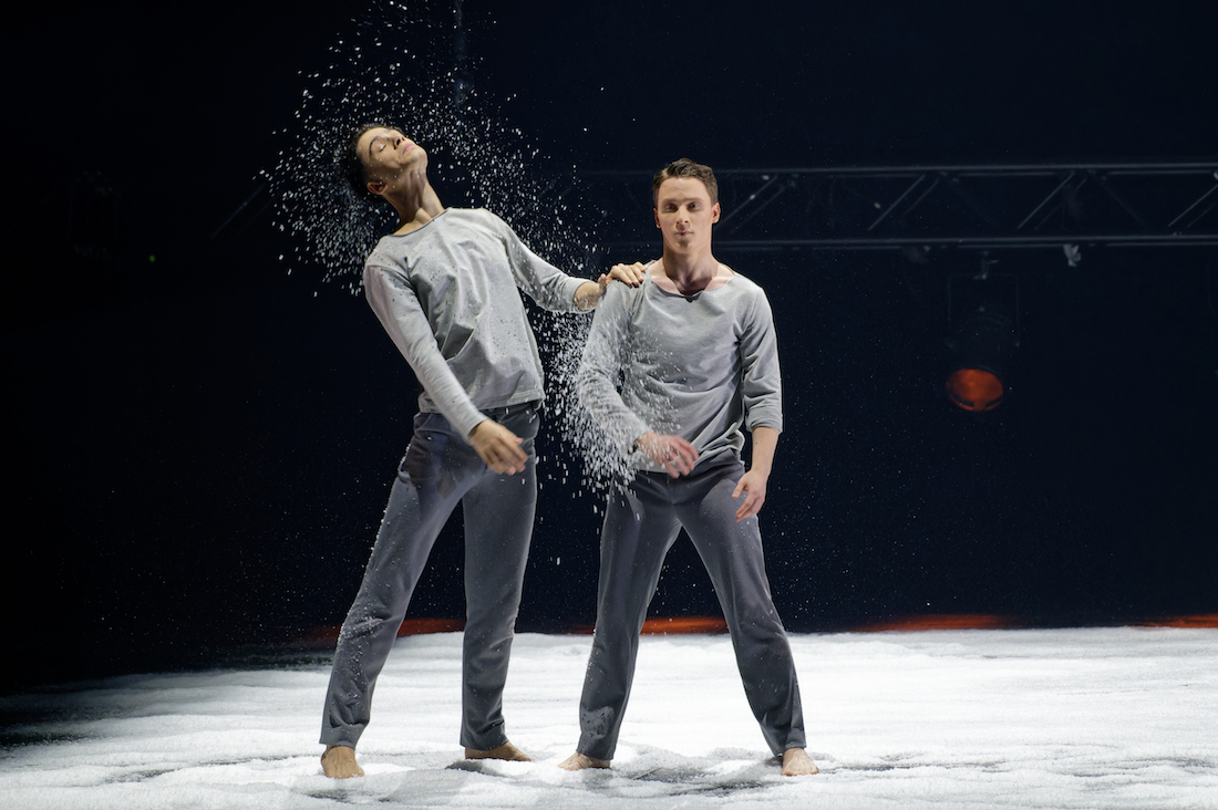 Šokėjai Yanas Malaki ir Mykhailo Mordasovas, kūrinys „Žagsulys“ (choreografas Robertas Bondara) Klaipėdos valstybinis muzikinis teatras | Martyno Aleksos nuotr.