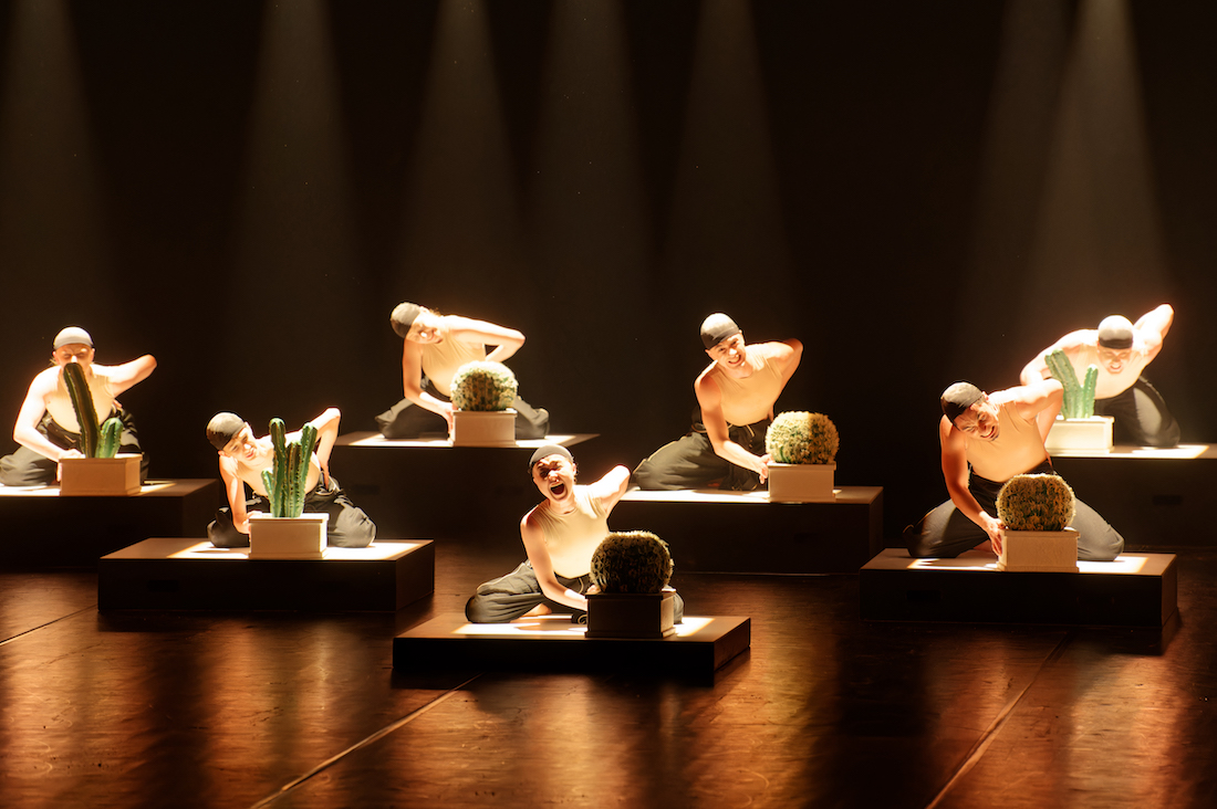 „Kaktusų“ šokėjai – įvairių tautų, profesionalūs, ištikimi šokiui. Tai – Oleksandra Borodina, Romanas Budko, Anna Chekmarova, Seojung Yun, Ksenija Jermakova, Yuliia Kovalenko, Yanas Malaki, Mykhailo Mordasovas, Tymuras Orobchenko, Simonas Richardas Schuh, Romanas Semenenko, Iryna Suslo, Illia Temchenko, Brayanas Stevenas Valencia Sarmiento, Daria Verovka, Kirstin Ann Zahradnick. Šešiolika šokėjų nuo pat pirmų akimirkų sugebėjo sutelkti žiūrovų dėmesį į neeilinį, kondensuotą šokį. Ekmanas, kiekvienam skyręs po kvadratinę plokštumą, sudarė pačias įvairiausias kompozicijas, sąmoningai atpalaiduojančias nuo bet kokių perteklinių apmąstymų. Šiame kūrinyje svarbus tempas, vis išnyrantis humoras ir ypatingai koncentruota partnerystė. Dinamiškas, tiksliai atliktas, net pats mažiausias šokio judesys formavo bendrą kūrinio atmosferą – tam tikrą suaugusiųjų žaidimą.