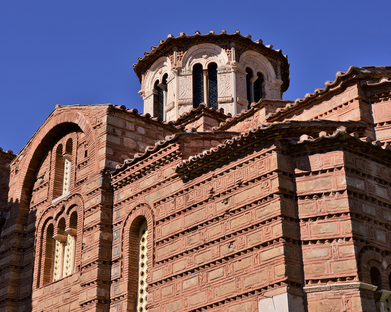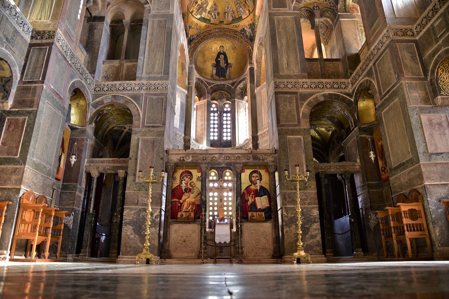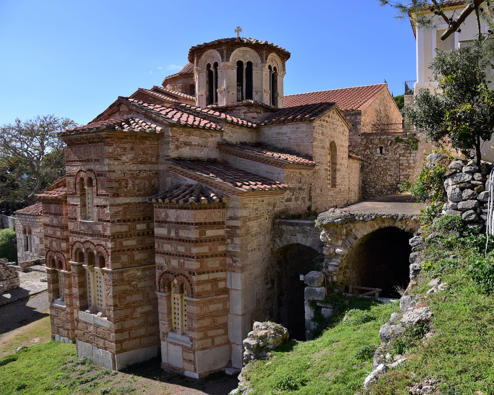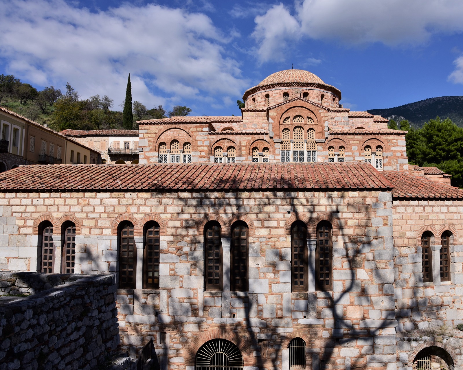 Manoma, kad Dievo motinai skirta bažnyčia, pastatyta X amžiuje, savo architektūra tapo prototipu daugybei kitų klasikinių Bizantijos bažnyčių pietų Graikijoje. Jei pastaroji bažnyčia daugiausiai stebina savo išore, tai pagrindinė bažnyčia kviečia pažvelgti į vidų. Čia kone įspūdingiausia komplekso detalė – puikiai išsilaikiusios sienų ir lubų mozaikos, reprezentuojančios biblines scenas ir atspindinčios bizantiškąją kultūrą.