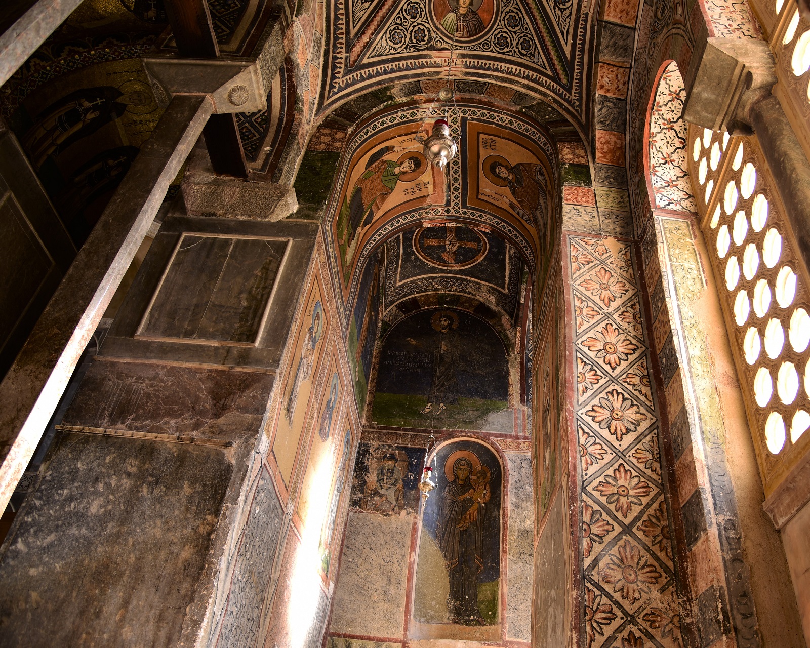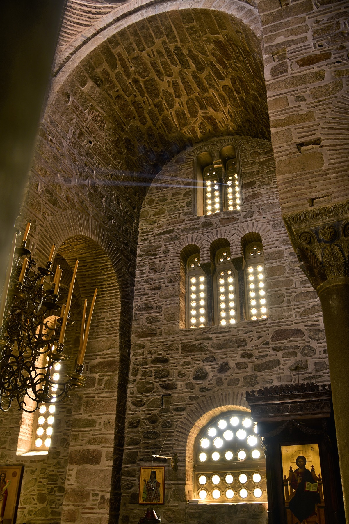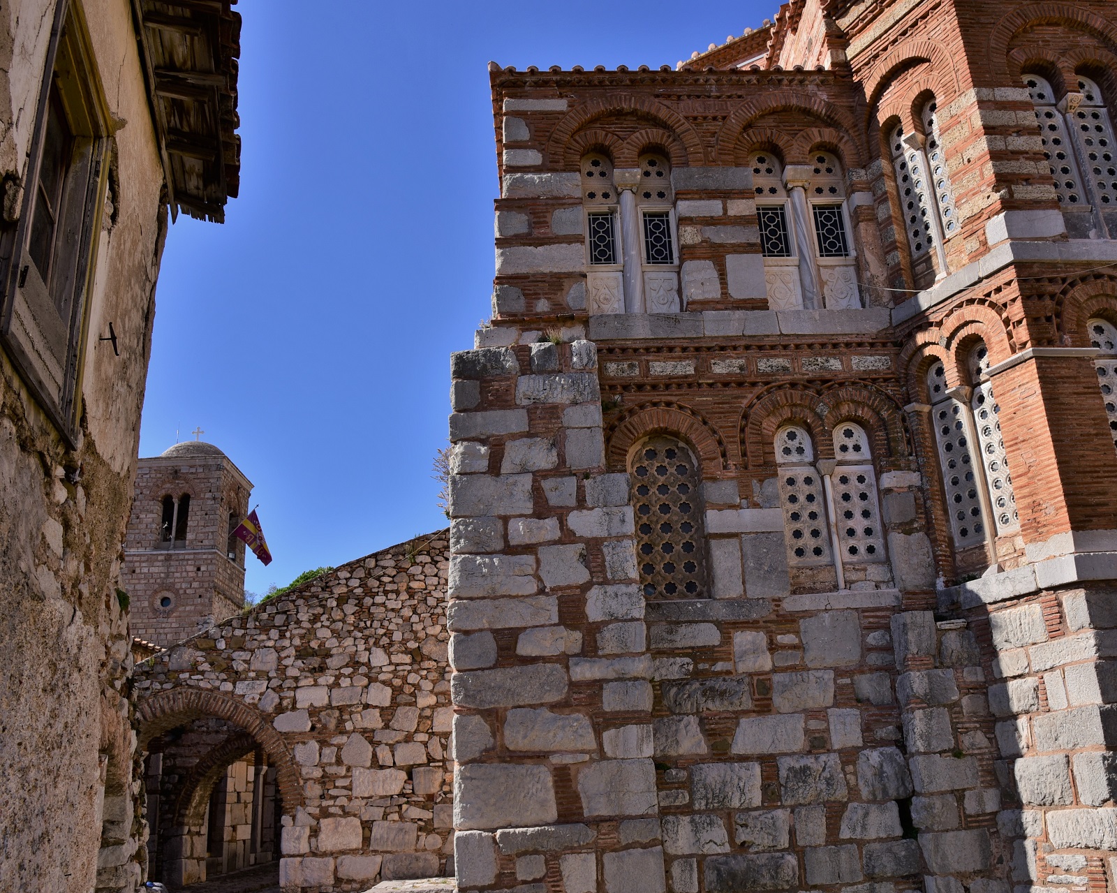 Manoma, kad Dievo motinai skirta bažnyčia, pastatyta X amžiuje, savo architektūra tapo prototipu daugybei kitų klasikinių Bizantijos bažnyčių pietų Graikijoje. Jei pastaroji bažnyčia daugiausiai stebina savo išore, tai pagrindinė bažnyčia kviečia pažvelgti į vidų. Čia kone įspūdingiausia komplekso detalė – puikiai išsilaikiusios sienų ir lubų mozaikos, reprezentuojančios biblines scenas ir atspindinčios bizantiškąją kultūrą.