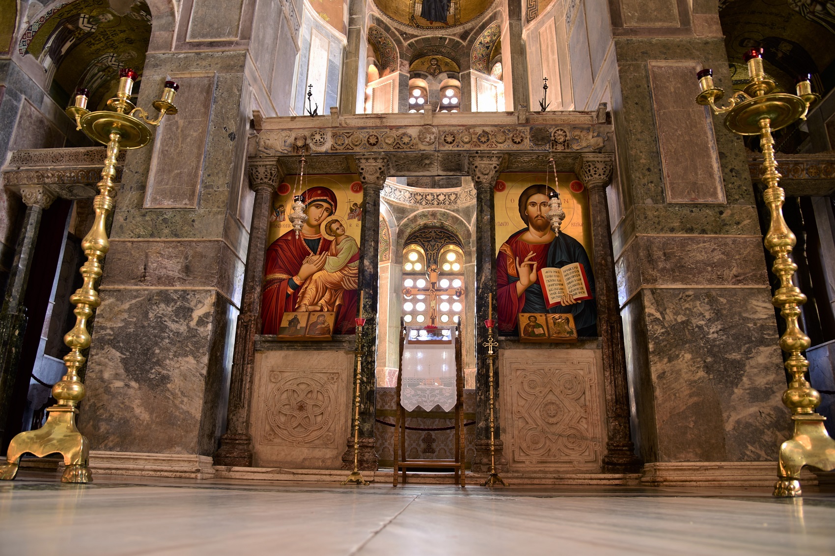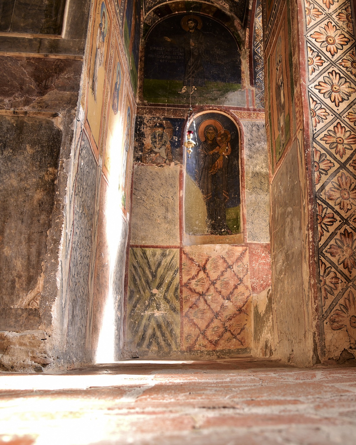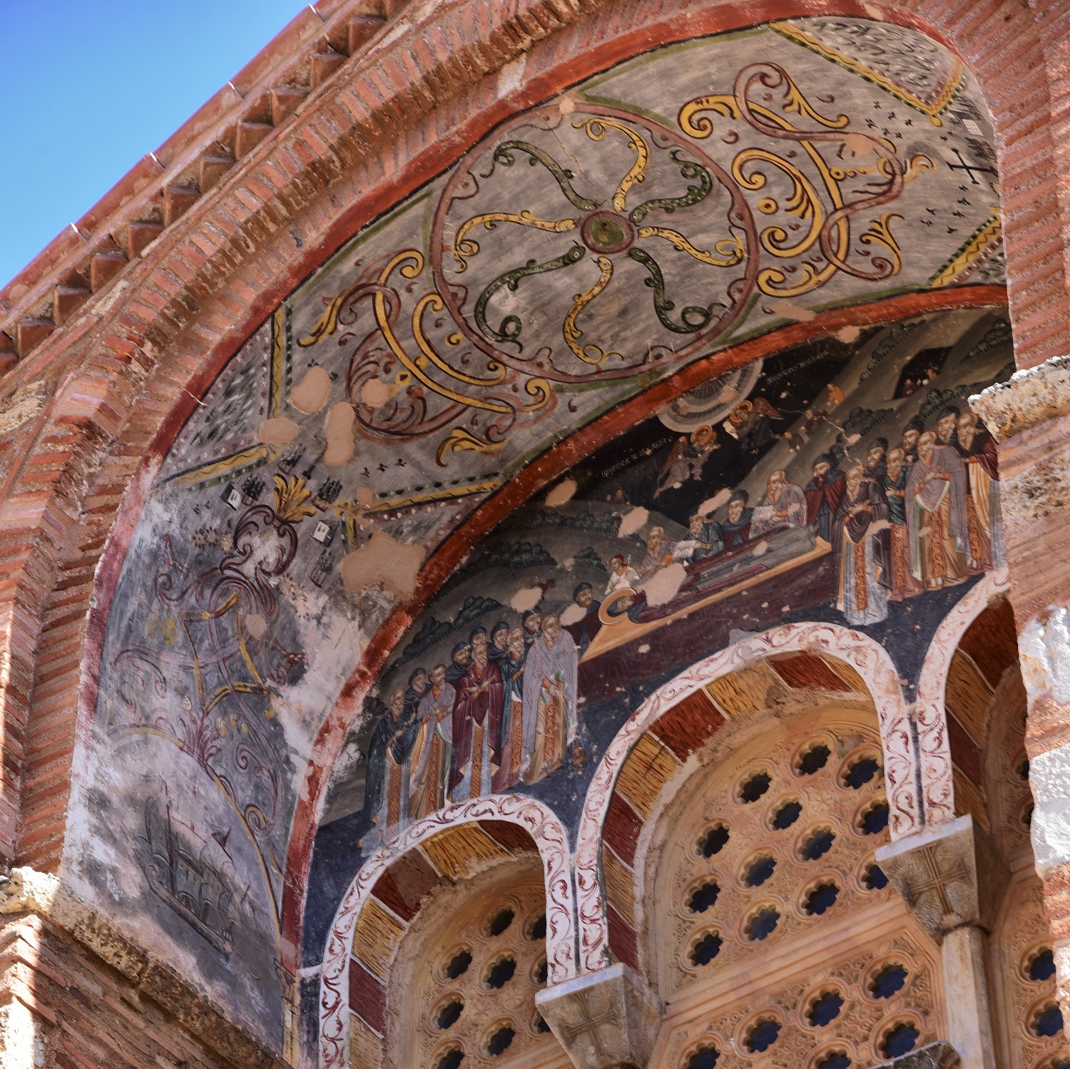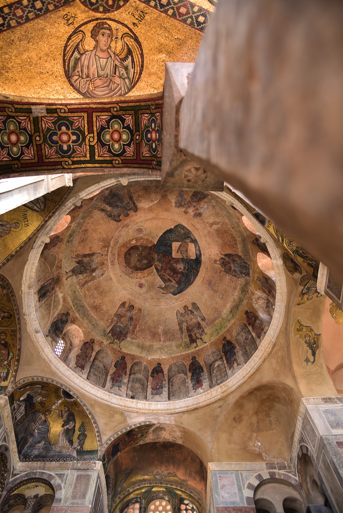 Manoma, kad Dievo motinai skirta bažnyčia, pastatyta X amžiuje, savo architektūra tapo prototipu daugybei kitų klasikinių Bizantijos bažnyčių pietų Graikijoje. Jei pastaroji bažnyčia daugiausiai stebina savo išore, tai pagrindinė bažnyčia kviečia pažvelgti į vidų. Čia kone įspūdingiausia komplekso detalė – puikiai išsilaikiusios sienų ir lubų mozaikos, reprezentuojančios biblines scenas ir atspindinčios bizantiškąją kultūrą.