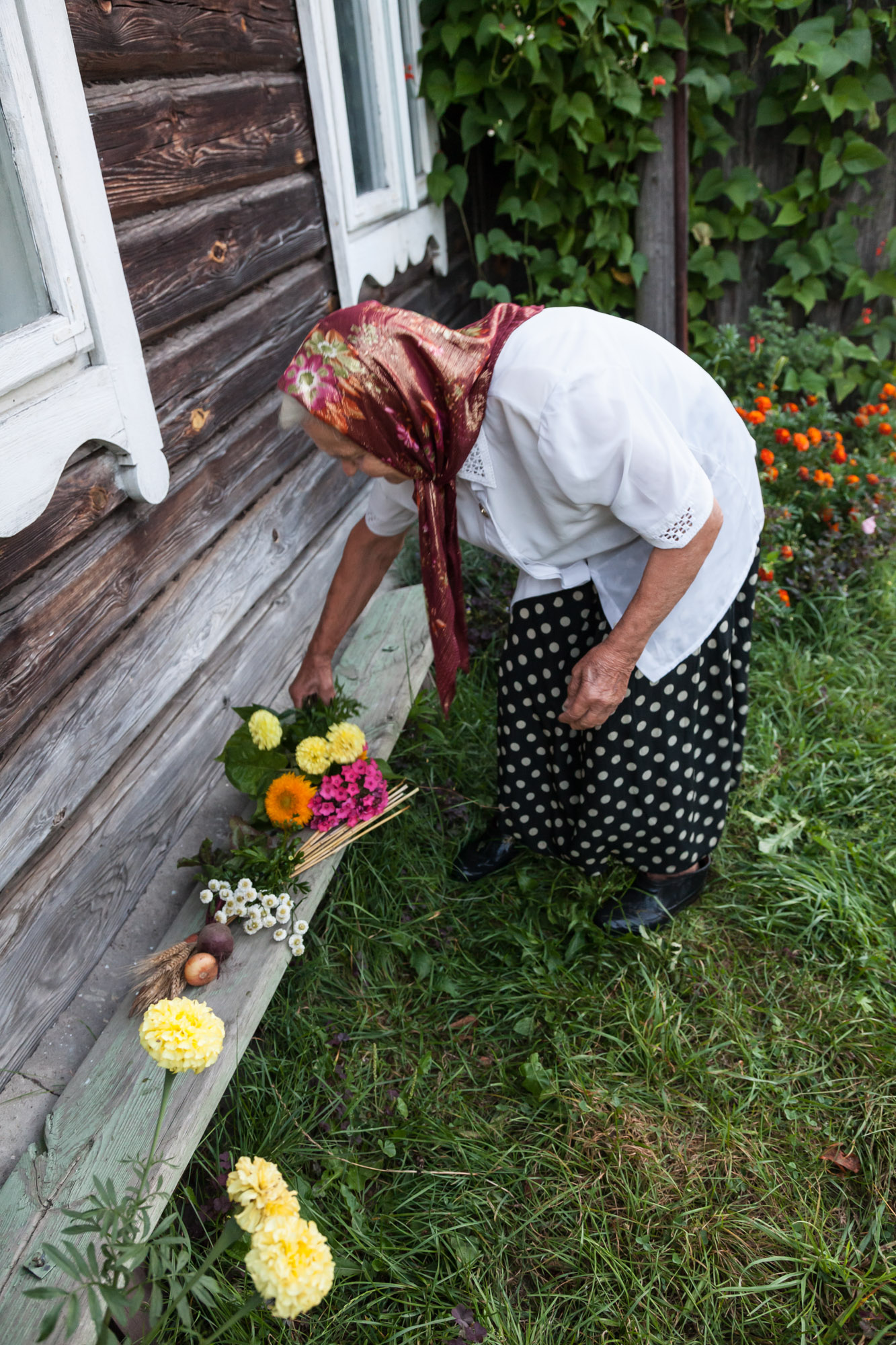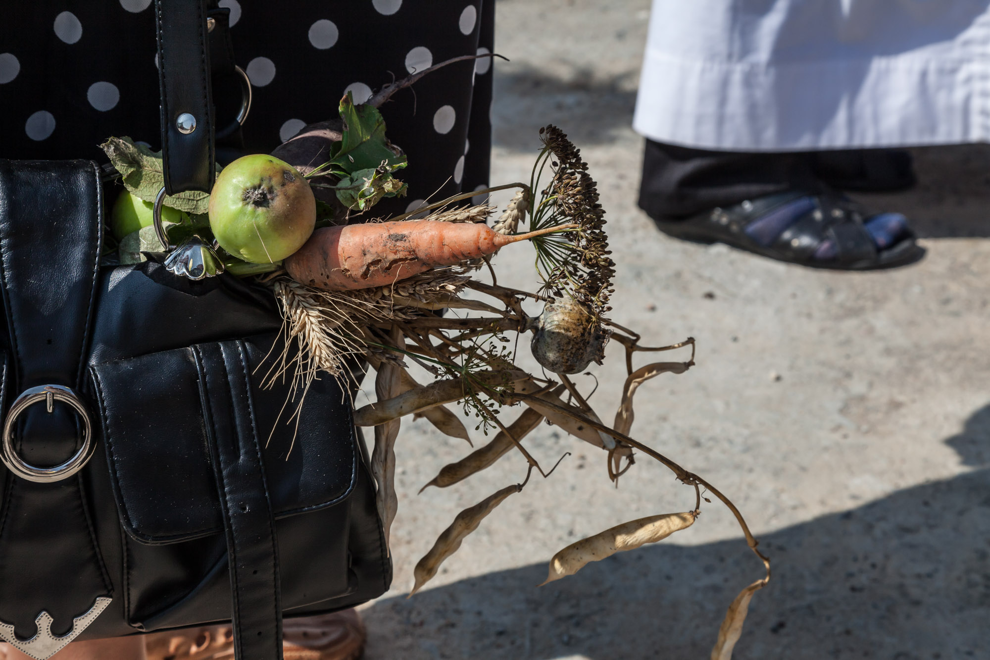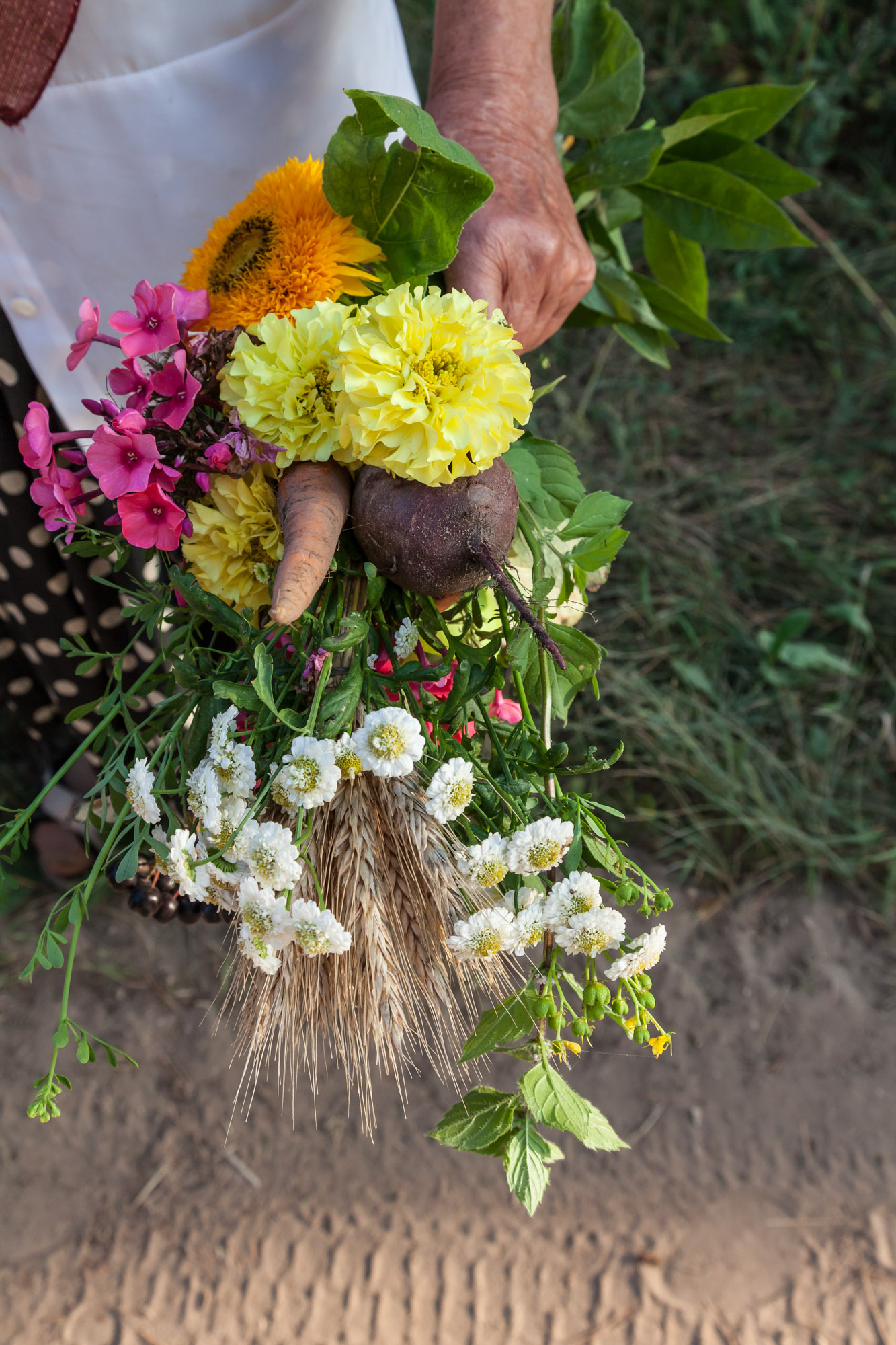 Liaudiškojoje tradicijoje ši šventė siejama su naujojo metų derliaus pašventinimu – į bažnyčią kiekviena moteris nešasi puokštę, kurioje dera javai, daržovės, vaisiai ir darželio gėlės. Kaip sako viena iš seniausių šio krašto moterų, Marija Mažeikienė, – viskas, kas auga an žemės. Ji Žolinės rytą į puokštę riša rugių varpas, čia pat darže išrautą morką, burokėlį, svogūną, aronijos ir obels šakelę su uogomis ir vasariniais obuoliais, iš gėlių darželio – rūtą, mėtą, kitas žydinčias gėles, prisimena, kad į bažnyčią šventinti nešdavo ir linų bei kitų javų varpų.