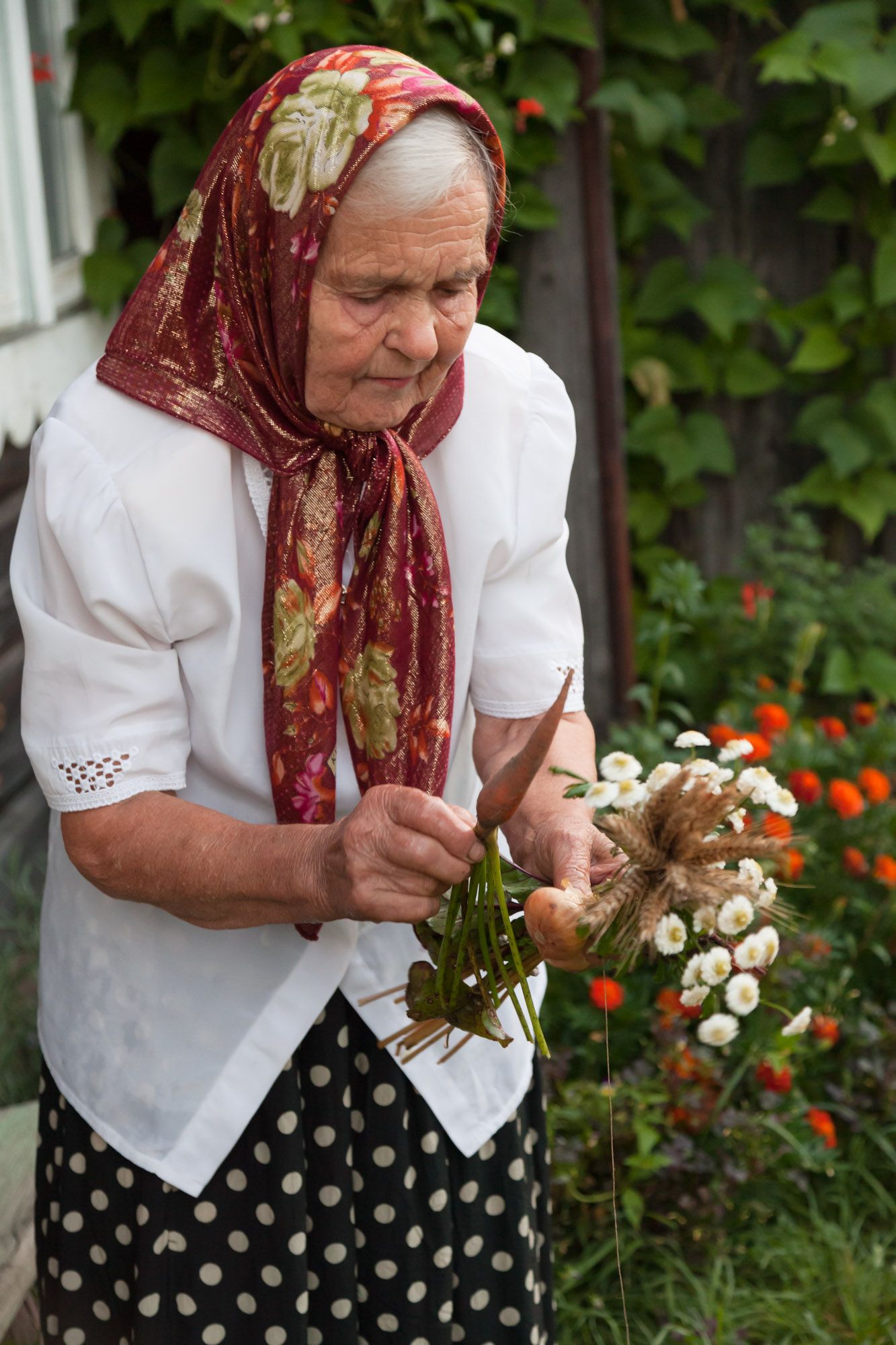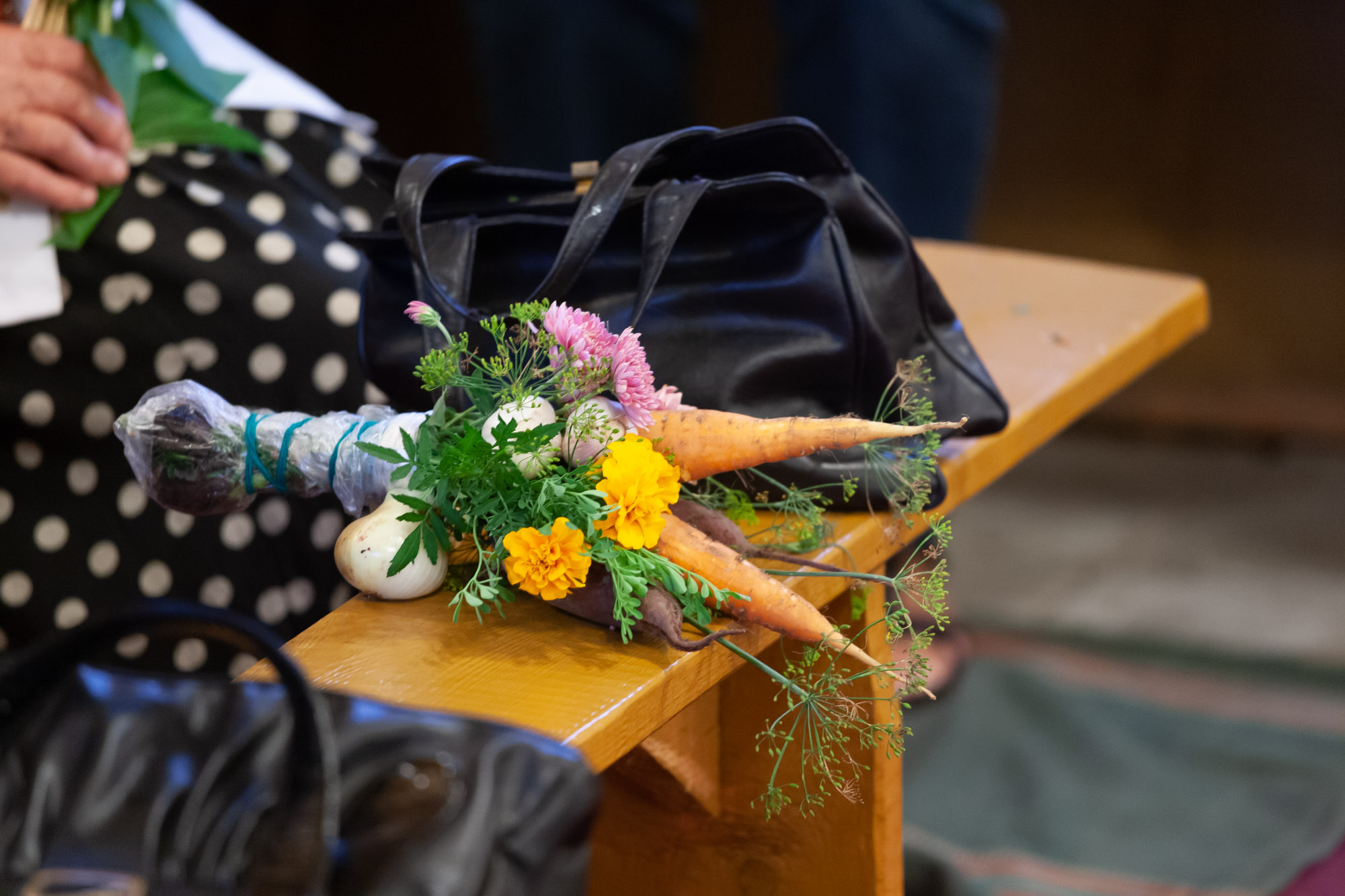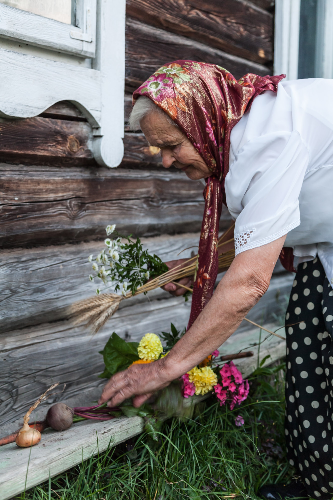 Liaudiškojoje tradicijoje ši šventė siejama su naujojo metų derliaus pašventinimu – į bažnyčią kiekviena moteris nešasi puokštę, kurioje dera javai, daržovės, vaisiai ir darželio gėlės. Kaip sako viena iš seniausių šio krašto moterų, Marija Mažeikienė, – viskas, kas auga an žemės. Ji Žolinės rytą į puokštę riša rugių varpas, čia pat darže išrautą morką, burokėlį, svogūną, aronijos ir obels šakelę su uogomis ir vasariniais obuoliais, iš gėlių darželio – rūtą, mėtą, kitas žydinčias gėles, prisimena, kad į bažnyčią šventinti nešdavo ir linų bei kitų javų varpų.