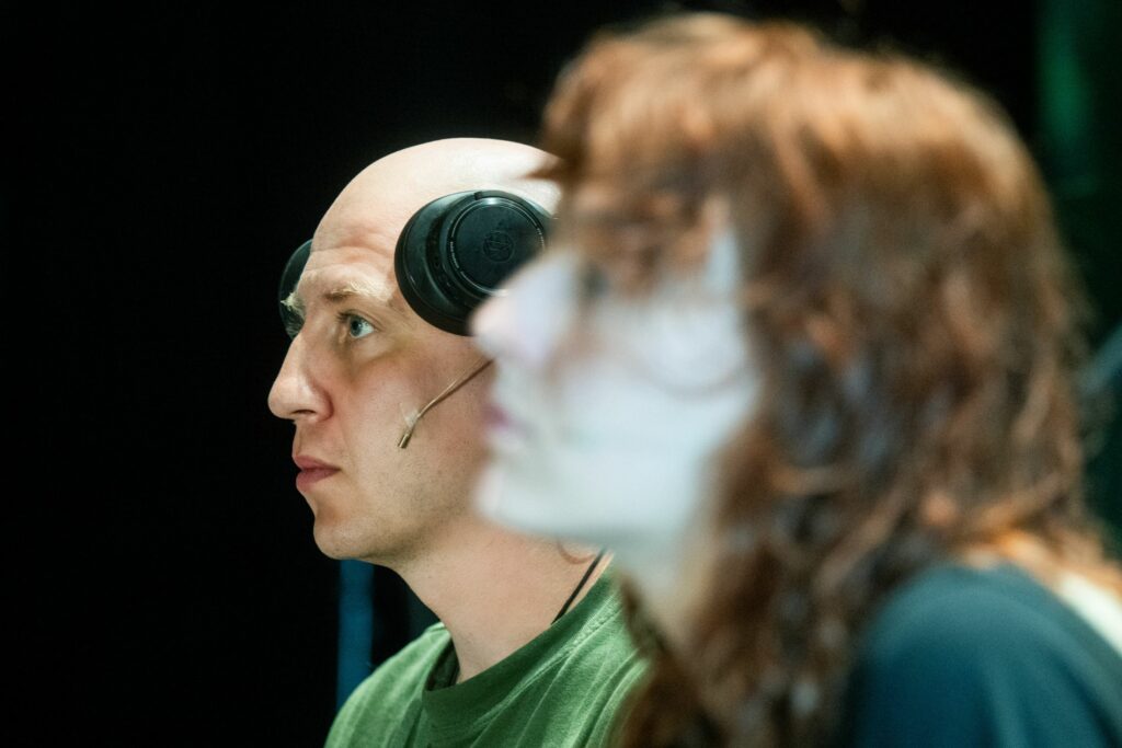 Be to, kūrybinio proceso metu bendravome su „Diemedžio“ mokyklos trečiokais. Ir proceso pradžioje, ir viduryje susitikome su jais, parodėme spektaklio perbėgą. Stebėjome jų reakcijas, kalbėjomės, ir tai buvo labai naudinga.