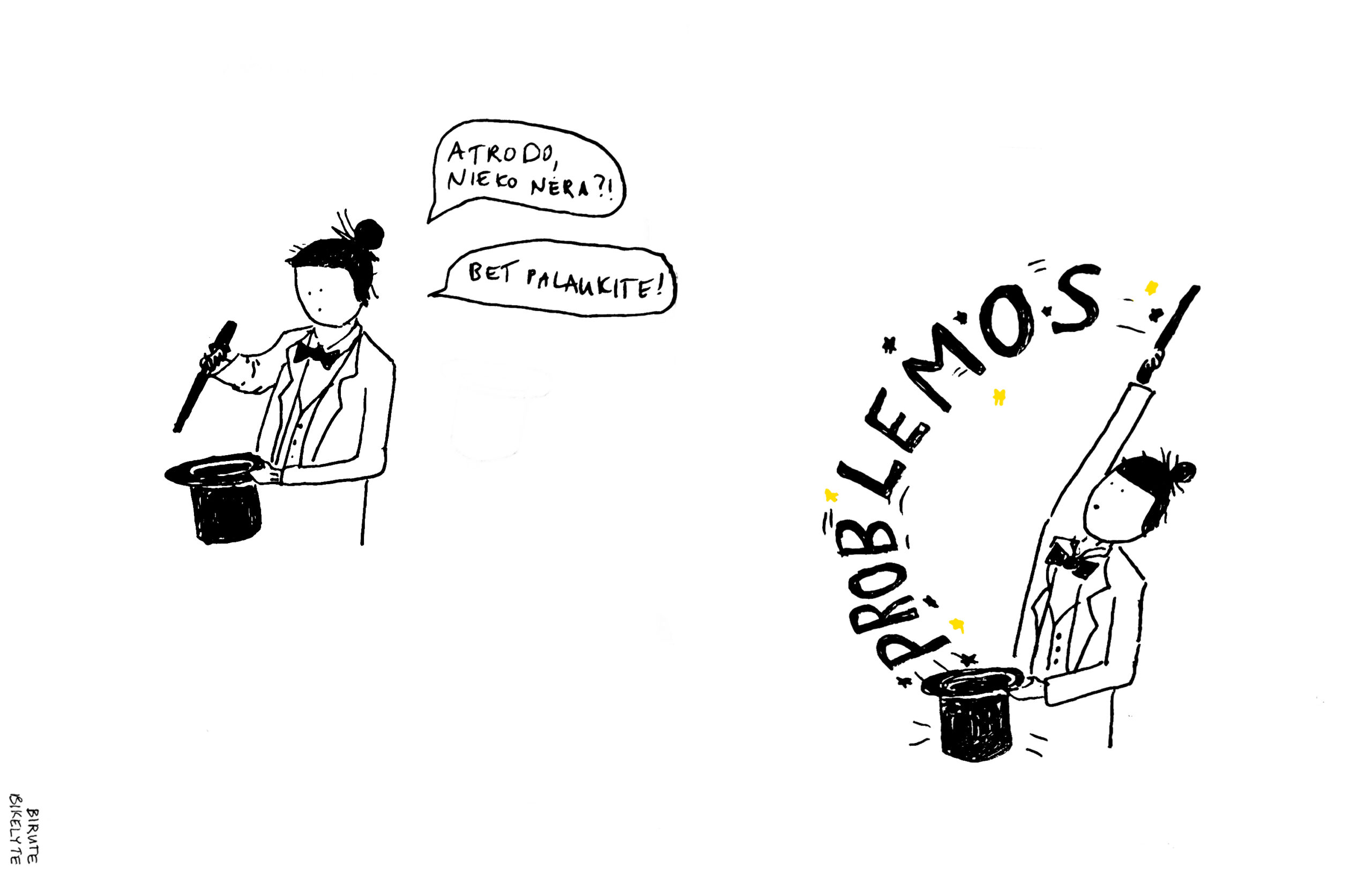 Nors visuomet visiems įrodinėju, kad viskas yra kūryba, prisipažinsiu, tikrai retai kada sau klijuoju menininkės etiketę. Taip pat dažnai mąstau, kad tai, ką kuriu, nėra iki galo gerai. Man atrodo daugelis menininkų, o tikriausiai ir žmonių, susiduria su apsimetėlio sindromu (angl. imposter sindrome), kai, kad ir kaip gerai kurtum, vis tiek atrodo nepakankamai. Tuomet ir nesinori nieko kurti. Kaip su tuo susitvarkau? Tiesiog imu ir darau. Tiesą sakant, visi mano piešinėliai taip atsiduria internete – ne dėl to, kad galvoju, kad jie visi šaunūs, o tik dėl to, kad įkeliu tiesiog iš įpročio. Didesniuose projektuose krizė ištinka, kai pritrūksta erdvės kūrybai. Matyt dėl to, kad turiu labai daug skirtingų veiklų, nelabai turiu laiko krizėms. Jei krizė ištinka viename lauke, tuomet keliauju kurti į kitą.