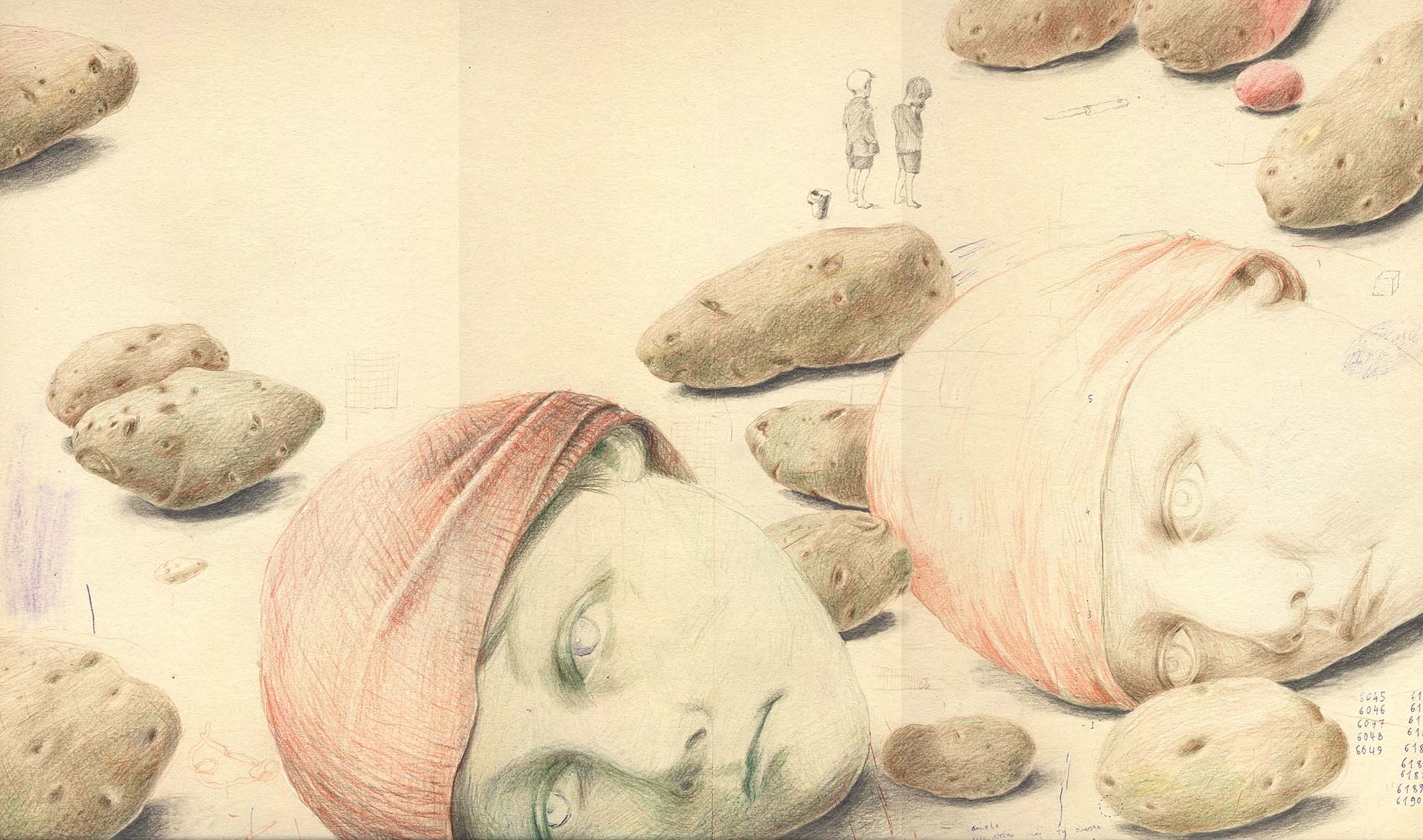 Joanna Concejo Margot Carlier knygos „M kaip marios“, 2021 metai, pieštukai, popierius, 33 x 49 cm.