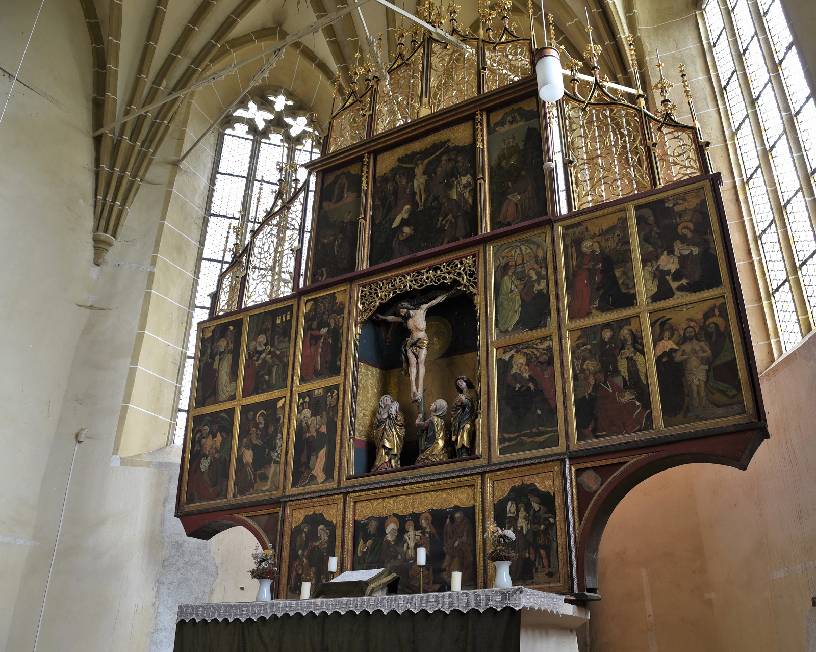 Šis „Kalėjimo bokštas“ – ne vienintelis. Biertan bažnyčią juosia ir kelios juostos 11 metrų aukščio sienų, sujungtų su kitais bokštais, koridoriais bei galingais vartais. Viduje – didžiausias Transilvanijoje medinis altorius bei šulinys, kuriuo, esant apsupčiai, naudodavosi bažnyčioje besiglaudę žmonės. Pasakojimo įžangoje minėtą „praktiškumą“ iliustruoja ir dar vienas įrenginys – unikalios durys, kurios vienu metu valdo net 15 sklendžių. 1900-aisias šis mechanizmas pristatytas ir parodoje „World Expo“.