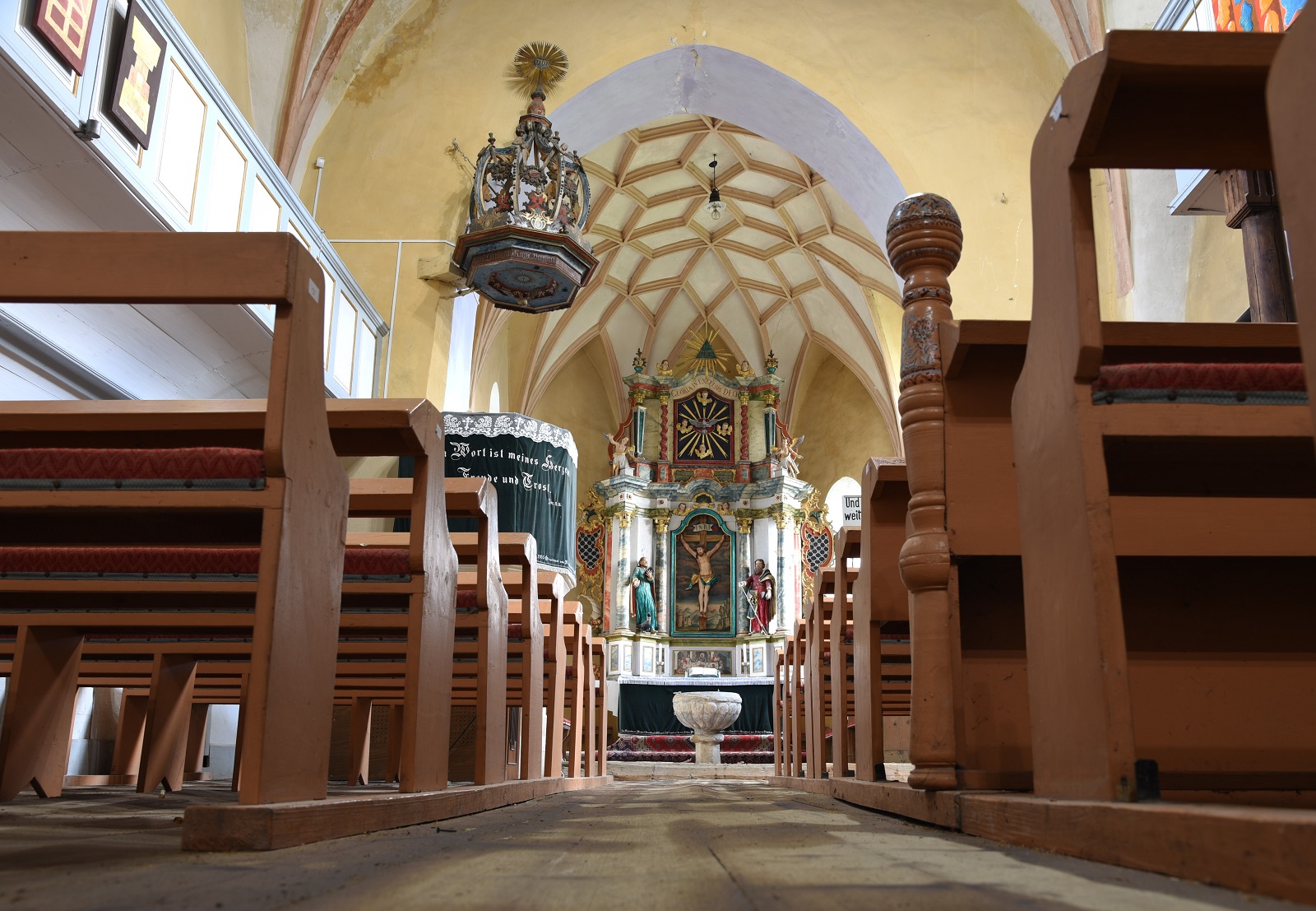 Viscri bažnyčioje nėra elektros, čia iki šiol pasišviečiama žvakėmis. | Foto: © „Vilniaus galerija“ / Audrius Klimas, 2018 m.