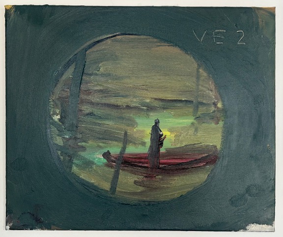 Gustas Jagminas. Saulėlydžio etiudas antrąją kelionę į Veneciją prisiminus, nutapytas tą vakarą, kai šį Pasaulį paliko David Lynch. 2025. Drobė, akrilas. 50×60