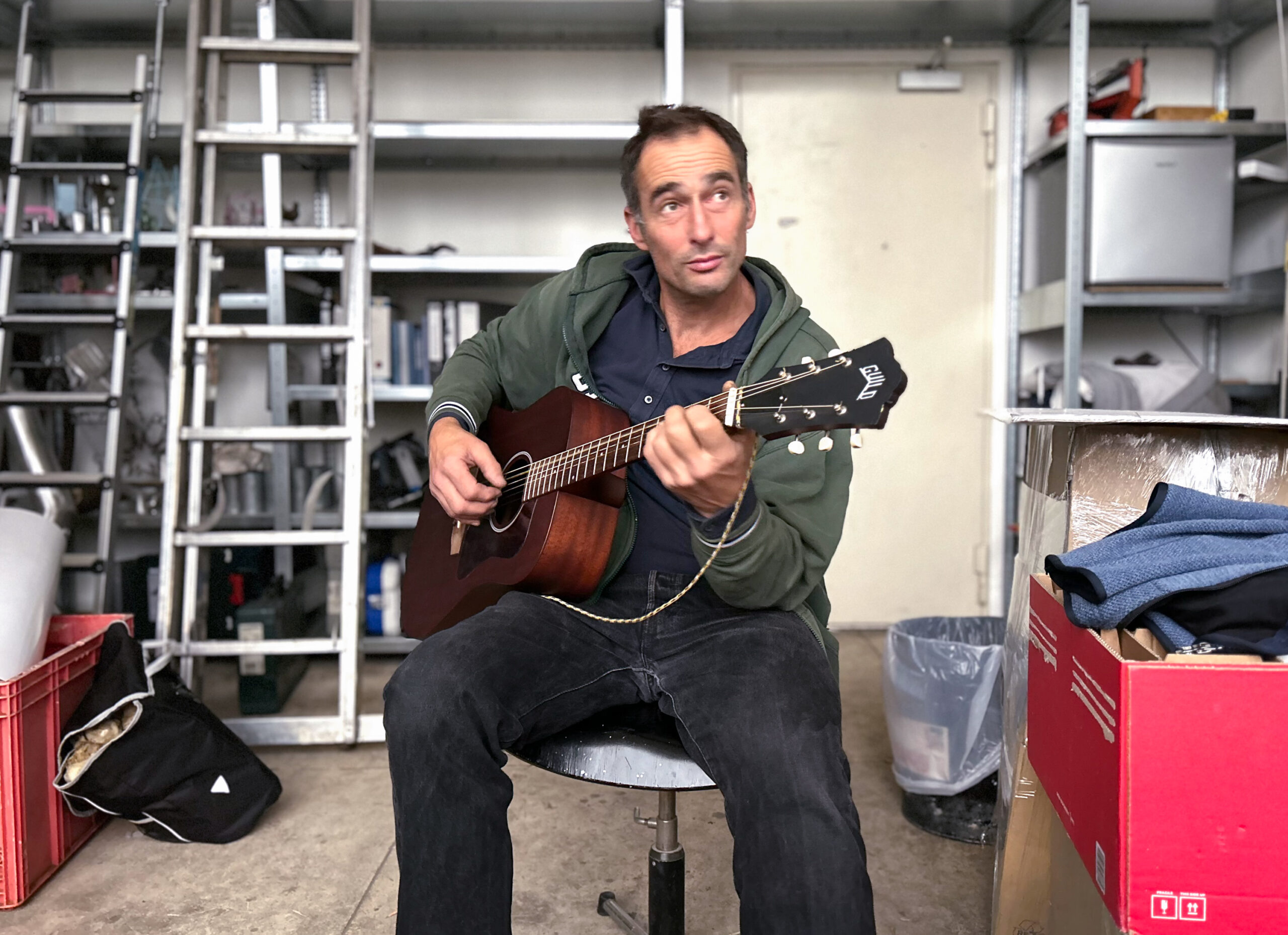 Štutgarte gyvenančio skulptoriaus ir performanso menininko Thomo Putze bei vilniečio tapytojo Gusto Jagmino bendradarbiavimas prasidėjo prieš gerą dešimtmetį, kai T. Putze virtualiai pamatė ir įsigijo keletą Gusto kūrinių. Tuo ši meno draugystė nesibaigė, menininkai nuolat bendrauja per socialinius tinklus, o 2024 metais Thomas pakvietė lietuvių menininką surengti bendrą parodą Štutgarte. Taip gimė pirmasis jų kūrybinis projektas „Svečių namai“ (vok. „Gasthaus“), tapęs atspirties tašku tolesnei meninei partnerystei.