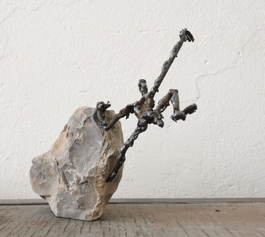 Thomas Putze. Boulderer, 2025, akmuo, plienas, 25 × 28 × 8 cm.
