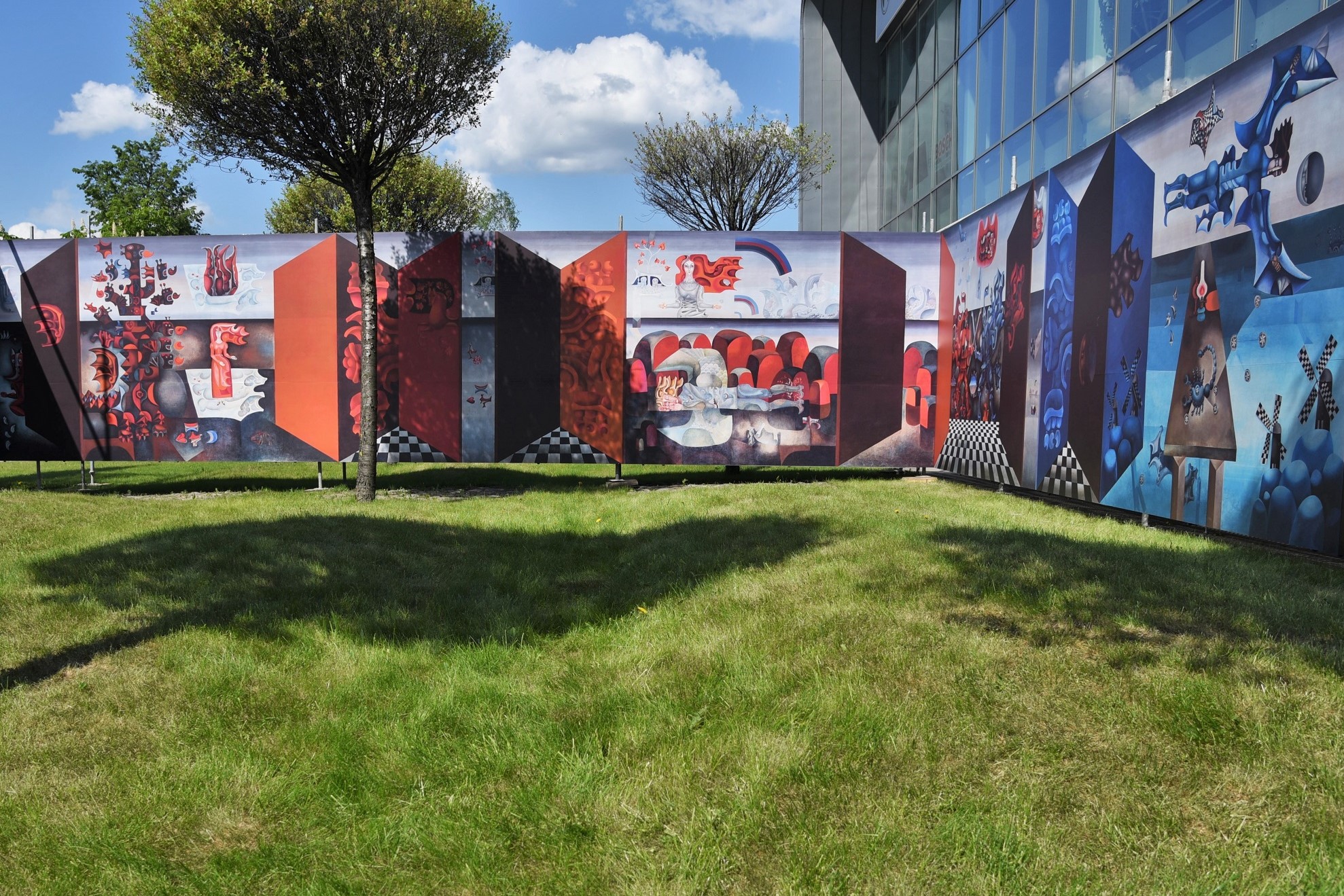 Natūralaus dydžio skaitmeninis freskos atspaudas, nebijantis nei saulės, nei lietaus, eksponuotas „Namų idėjų centro“ („NIC“) lauko teritorijoje. Tai – ne pavieniai kūrinio fragmentai, o ištisinė, autentiško dydžio siena, kurios bendras plotas siekia net 110 kvadratinių metrų.