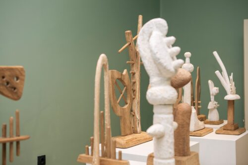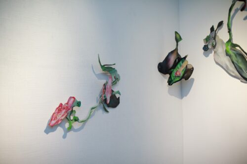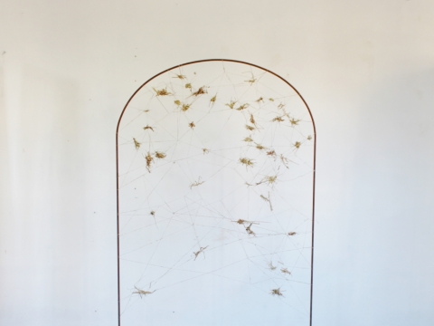 Parodoje „Užlaikomi“ menininkė pristato kūrinių, tapybos ir objektų kolekciją, kurios centre – lokalaus peizažo elementai ir ženkliški gestai, reflektuojantys fragmentišką būvį ir saugumo paieškas.
